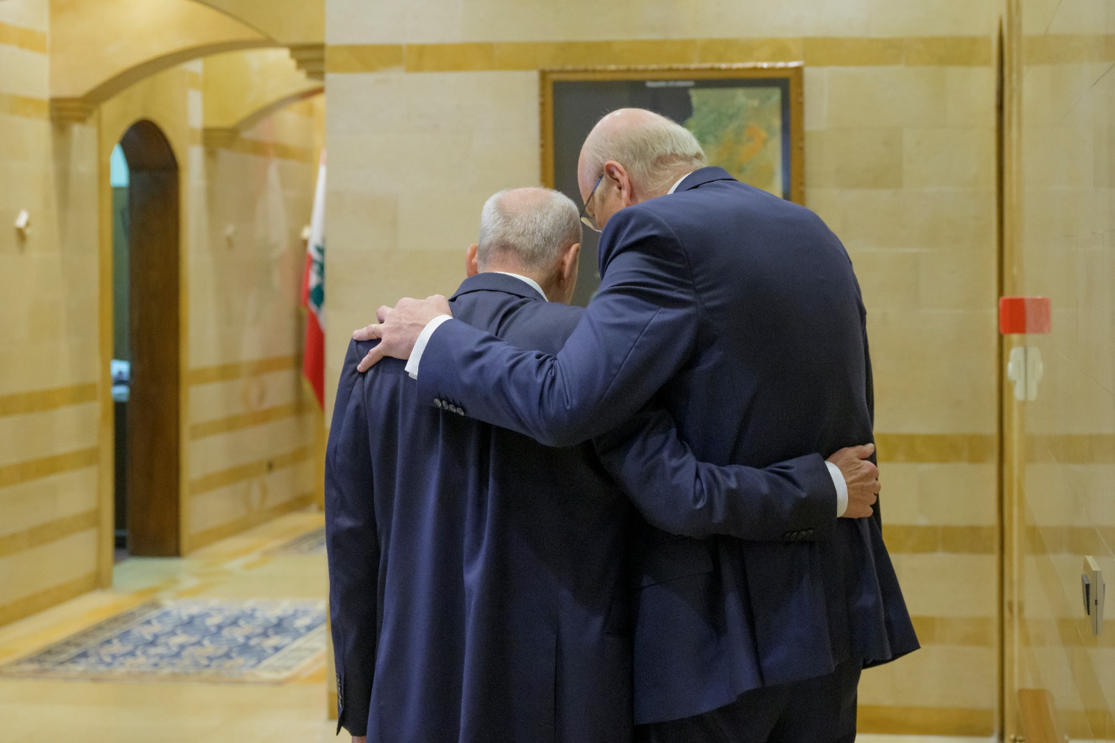 11- عناق بين رئيس الوزراء نجيب ميقاتي ورئيس المجلس النيابي نبيه بري.