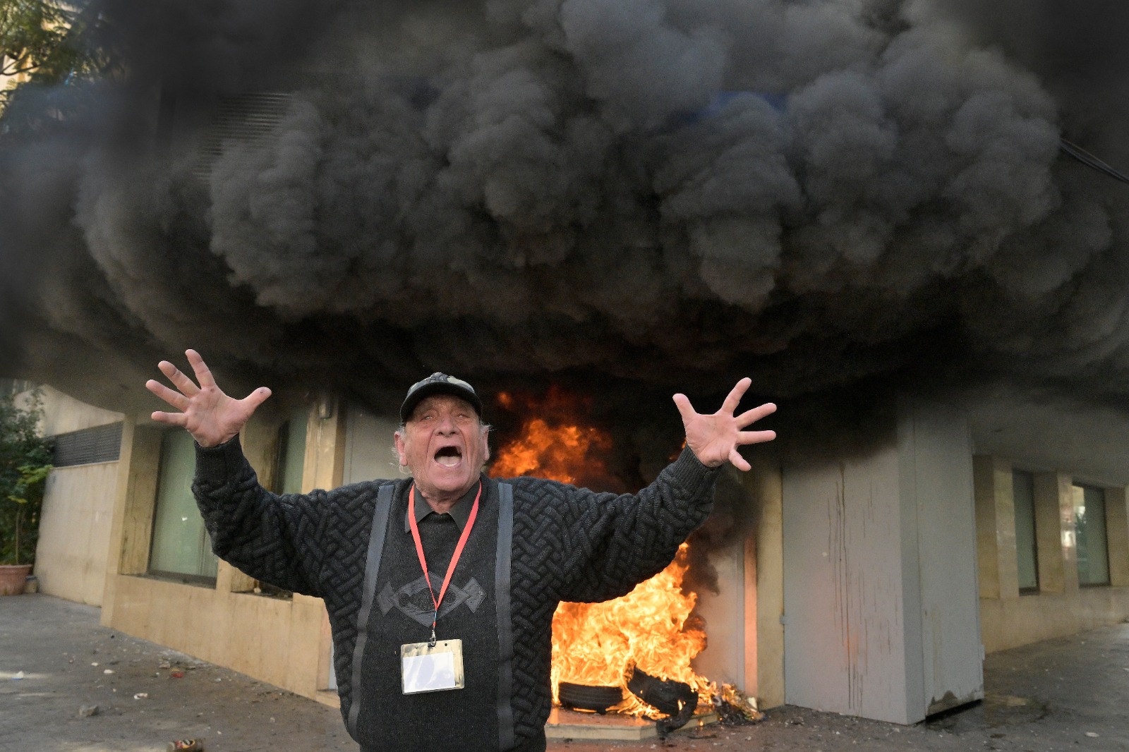 14- صرخة المودع والمواطن منير ملاعب، أمام مصرف فرنسبنك في بدارو، خلال مشاركته في اعتصام "صرخة المودعين".
