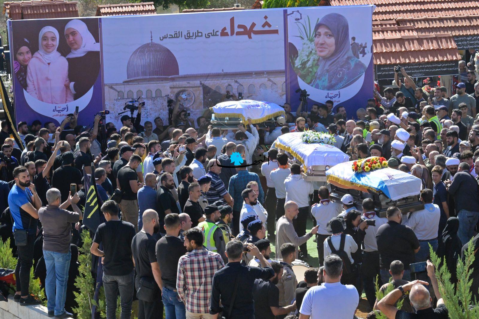 1- تشييع شهيدات بلدة عيناثا الجنوبية، بعدما استهدفت طائرة إسرائيلية مسيّرة سيارة مدنية كانت تقودها السيدة هدى حجازي وبرفقتها بناتها الثلاث ووالدتها السيّدة سميرة أيّوب.