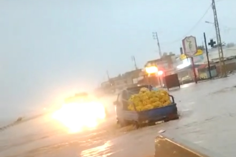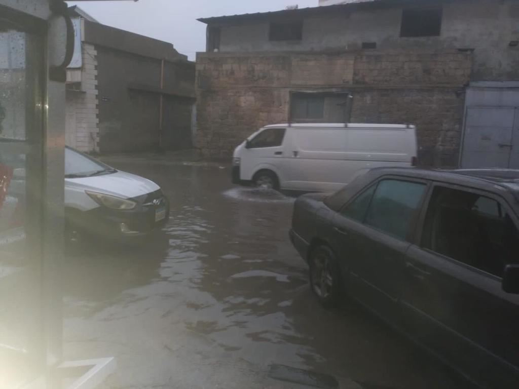 غرق الشوارع في الميناء جرّاء الأمطار.