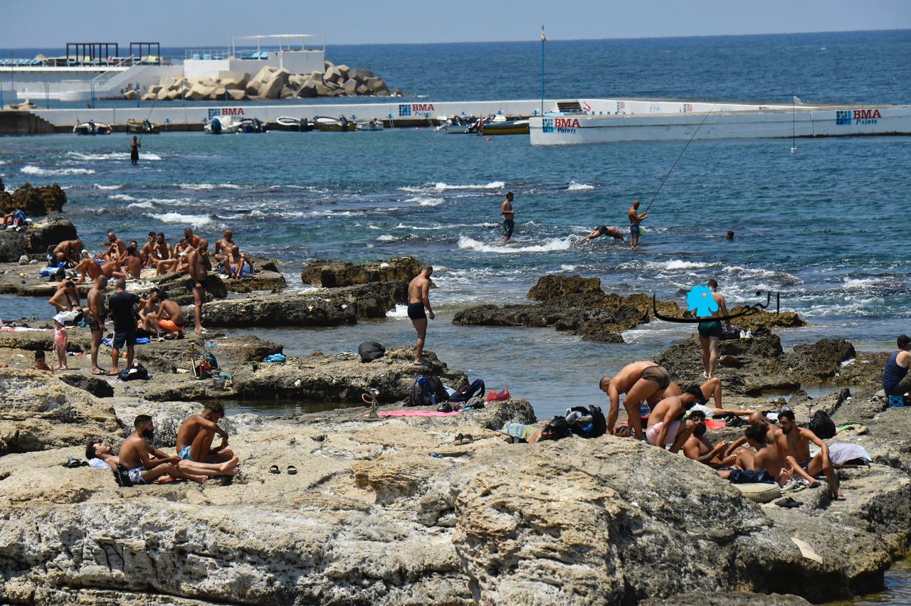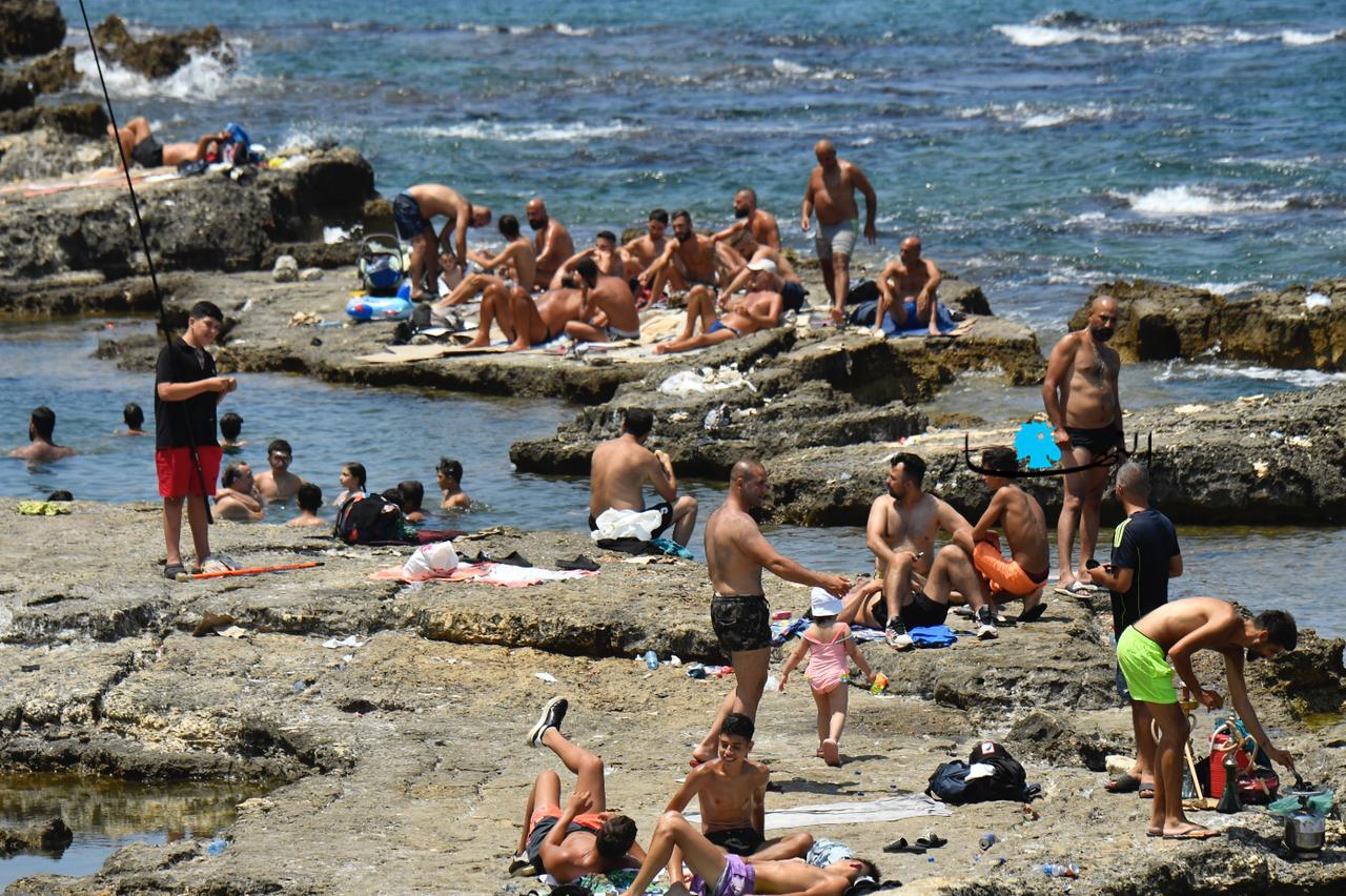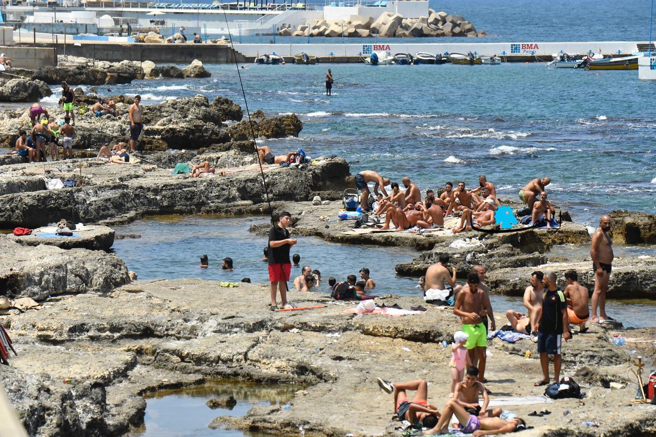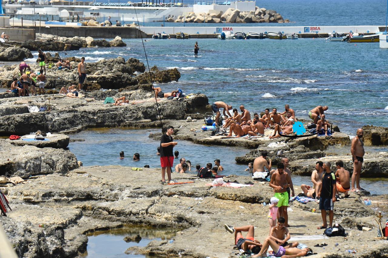 مع ارتفاع درجات الحرارة وغياب التيار الكهربائي، توجّه اللبنانيون بكثافة إلى البحر، للاستمتاع بالمياه والسباحة، كما أشعة الشمس الحارقة.