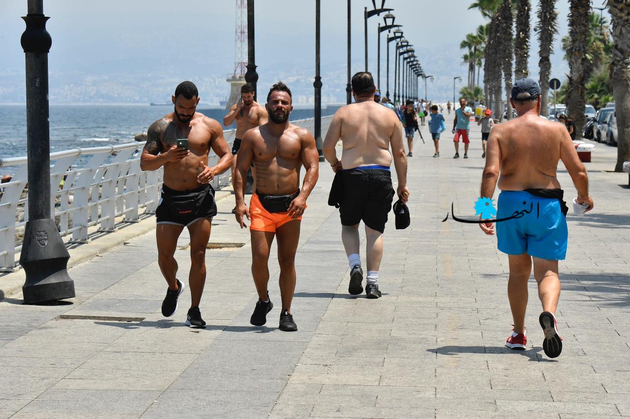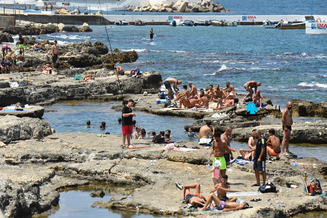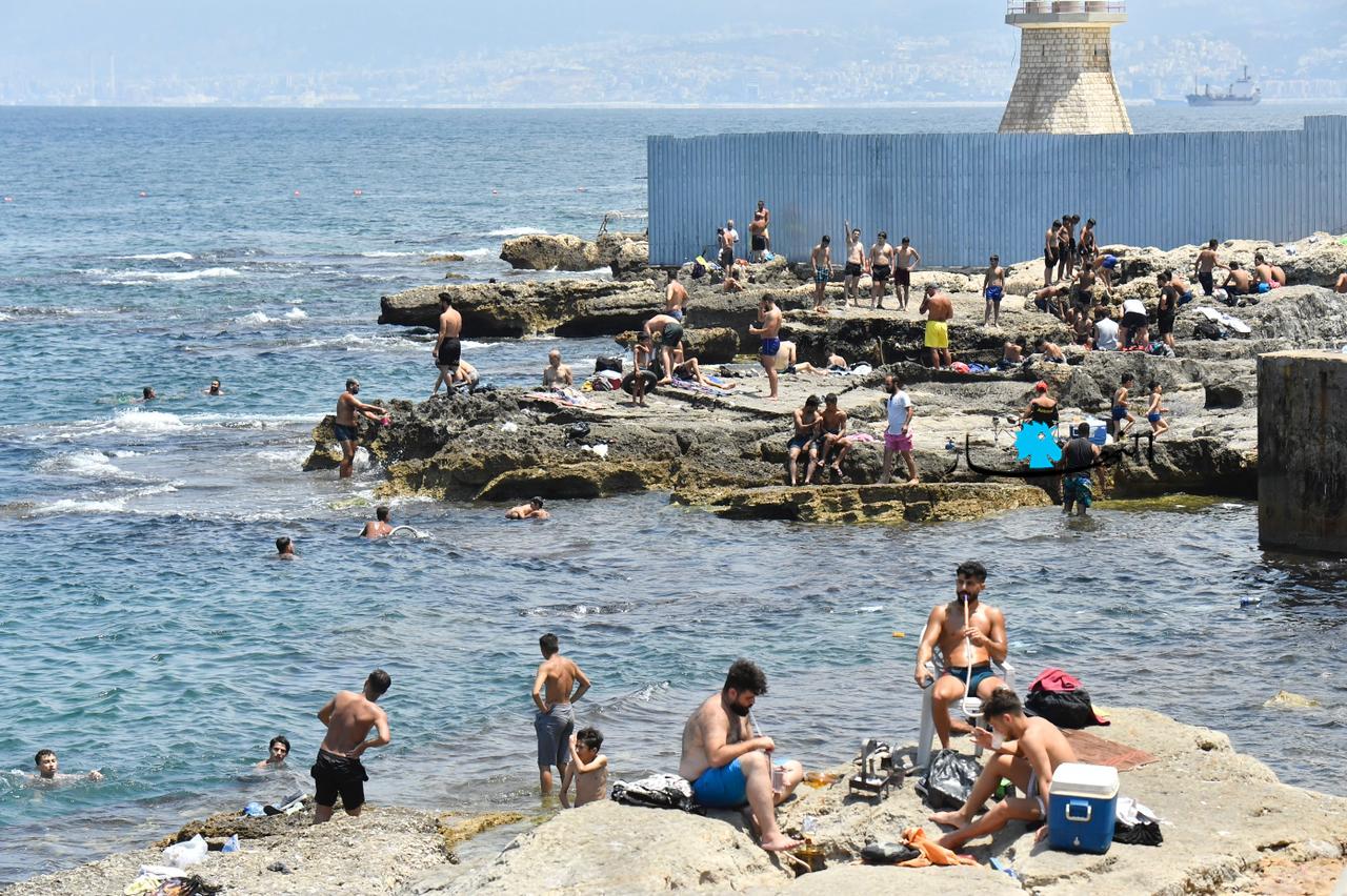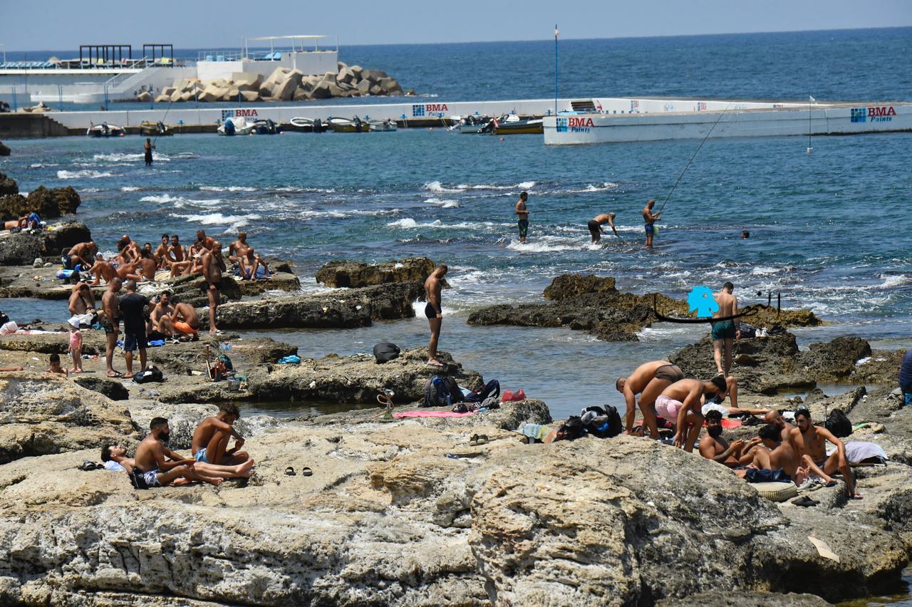 مع ارتفاع درجات الحرارة وغياب التيار الكهربائي، توجّه اللبنانيون بكثافة إلى البحر، للاستمتاع بالمياه والسباحة، كما أشعة الشمس الحارقة.