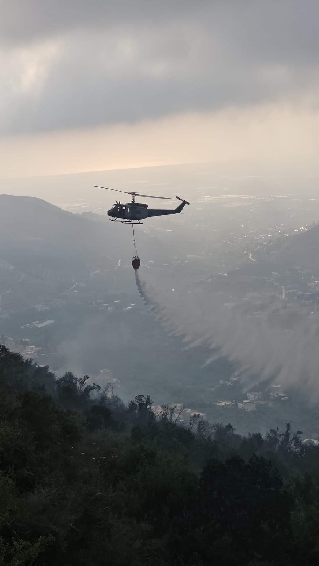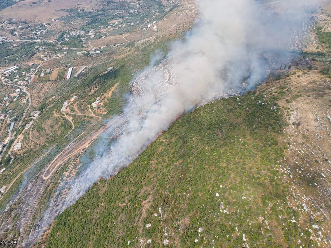 وأشار الى أن "تفاقم الحريق تطلب تدخل القوات الجوية في الجيش اللبناني عبر مروحيّتين استقدمتا للمساعدة، وجرى تأمين المياه لهما من بركة بلاستيكية وضعت لهذه الغاية في حرم جامعة البلمند - معهد عصام فارس للتكنولوجيا – بينو، وغذّتها آليات عدة من الدفاع المدني وبعض الصهاريج المحلية، التي استقدمها اتحاد بلديات الجومة والبلدات المجاورة".