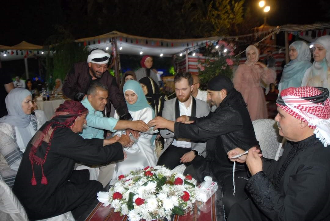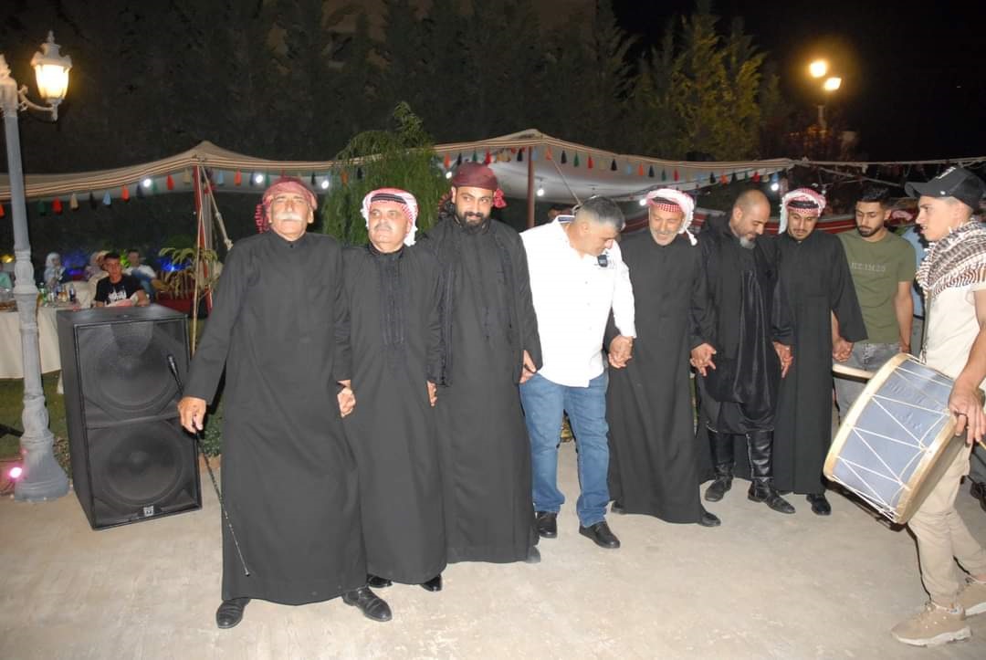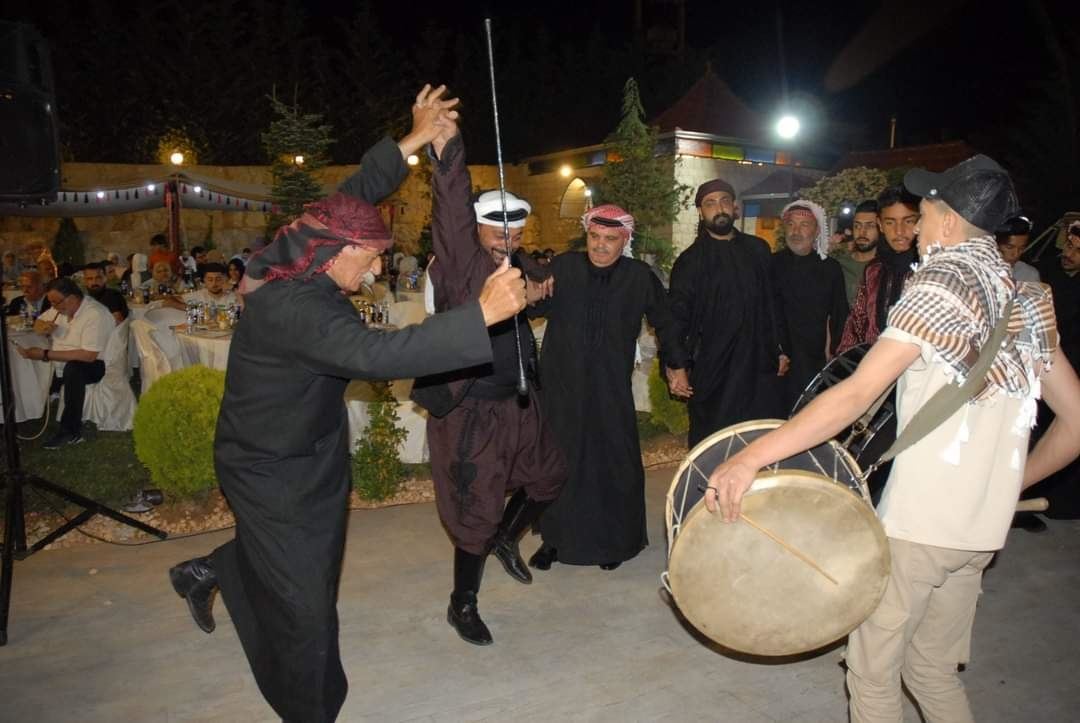 ويقول: "العرس القديم يبدأ بتحضير مكان التجمّع، حيث تُوضع سلالم خشبيّة تُغطّى بالأقمشة لتصبح مقاعد للضيوف. ويحضر عازفو المجوز والمنجيرة والطبل لتبدأ الدبكة في الساحة المخصصة. أما النساء، فلا يختلطن بالرجال، بل يراقبن من بعيد أو من أسطح المنازل. وعندما يرقص العريس أو أيّ وجيه في العرس، تُطلق النساء الزغاريد. وعندما يغادر الغرباء، تنضم النساء إلى أقاربهن في الرقص".