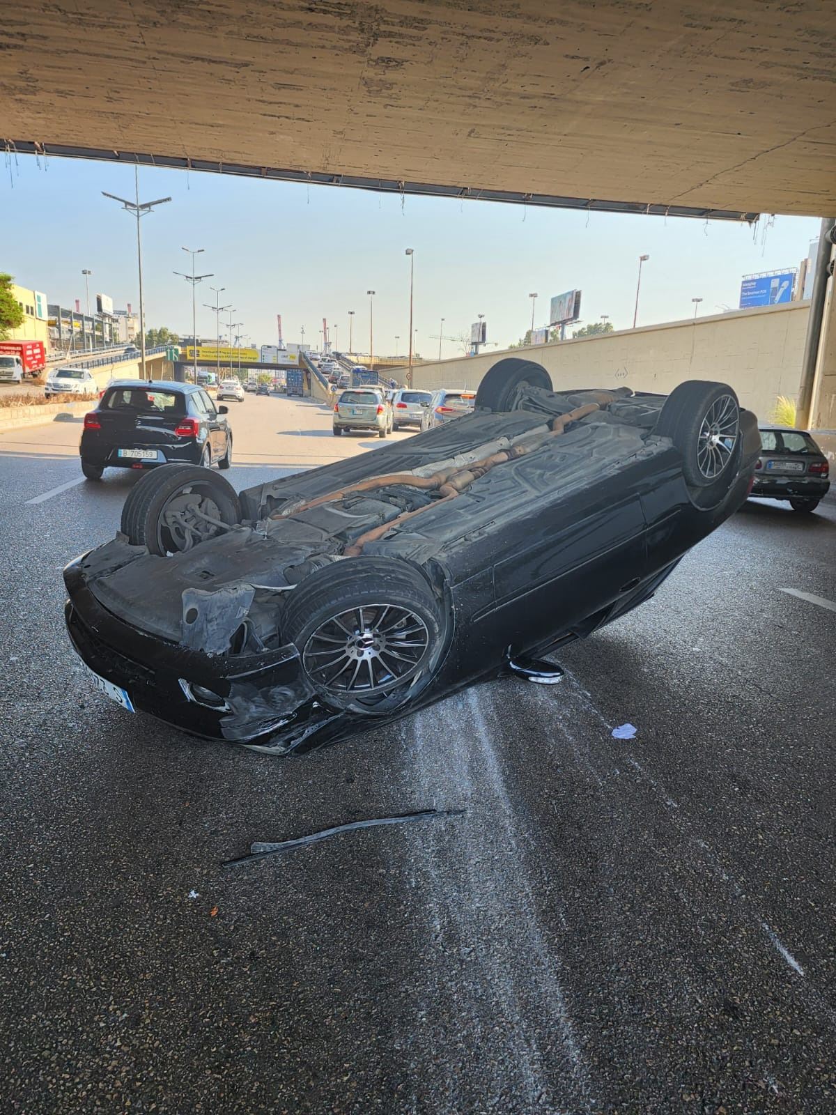 انقلاب سيّارة على أوتوستراد الرئيس لحود باتّجاه جسر الكرنتينا.