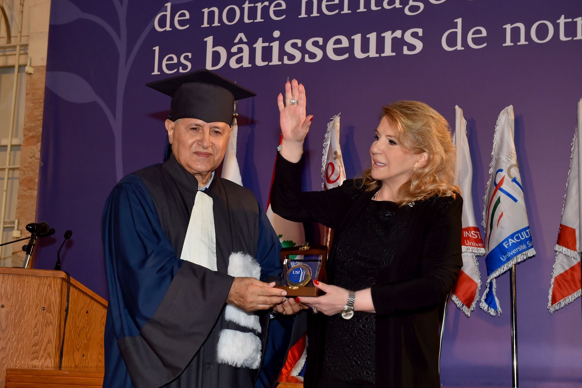 رعت نائبة رئيس مؤسسة الوليد للانسانية الوزيرة السابقة ليلى الصلح حماده حفل تخرّج طلاب العلوم الطبيّة لجامعة القديس يوسف في حضور رئيس الجامعة ورئيس مجلس ادارة مستشفى اوتيل ديو الاب سليم دكاش وافراد من الهيئتين التعليمية والادارية واهالي المتخرّجين.