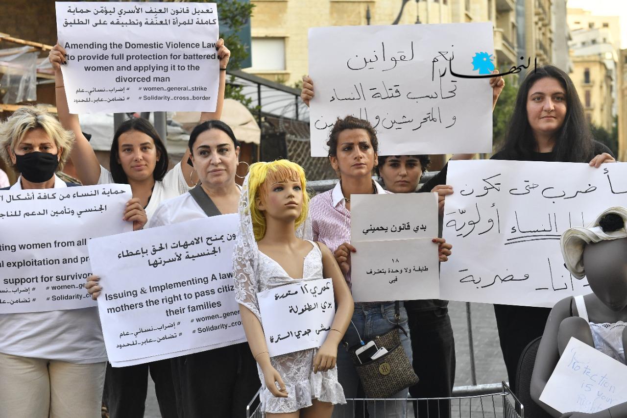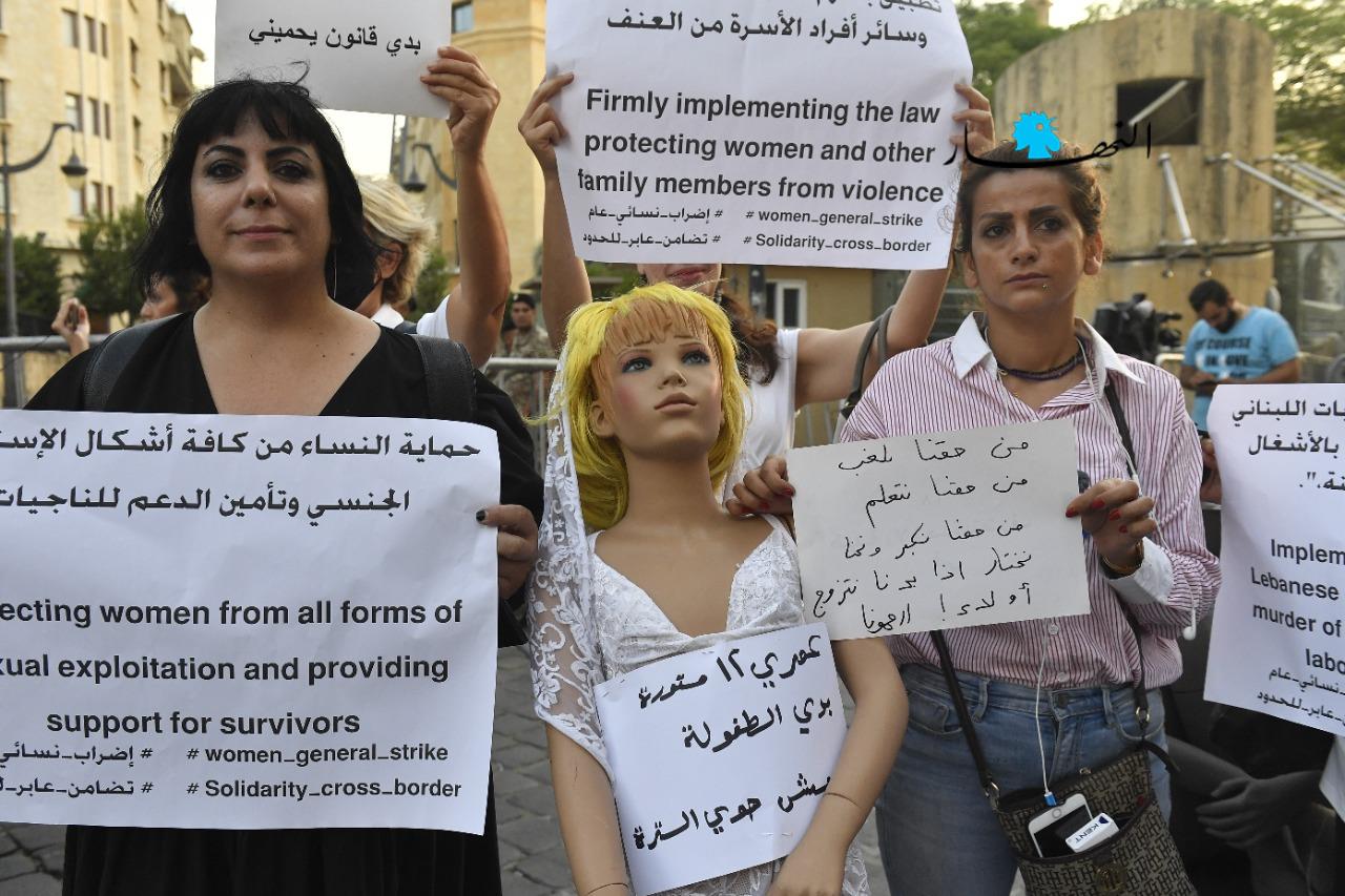 كما رفعنَ يافطات مناهضة للعنف وتزويج القاصرات وصوراً كتب عليها أسماء عديدة لضحايا العنف الأسري والاغتصاب في لبنان.