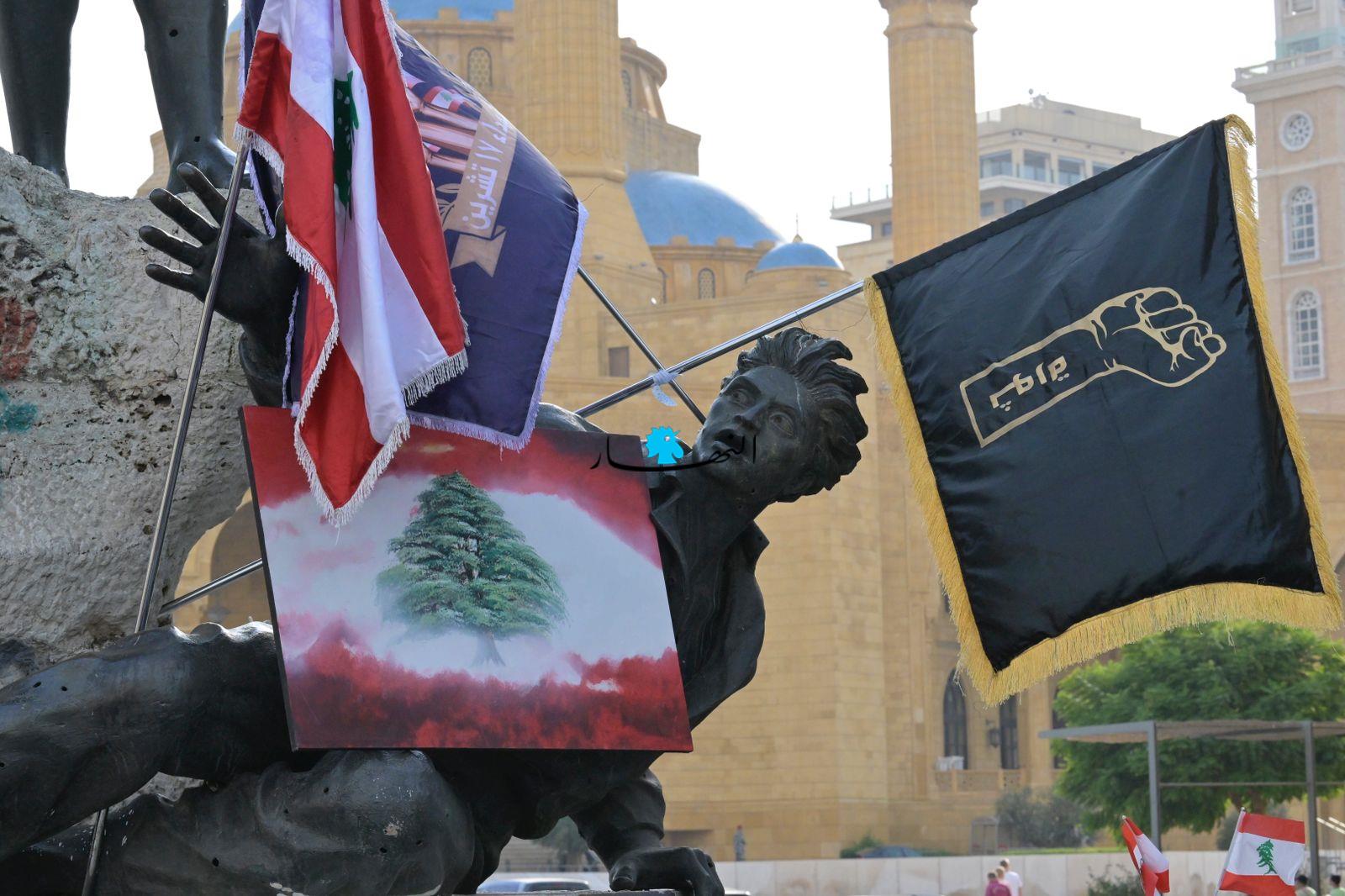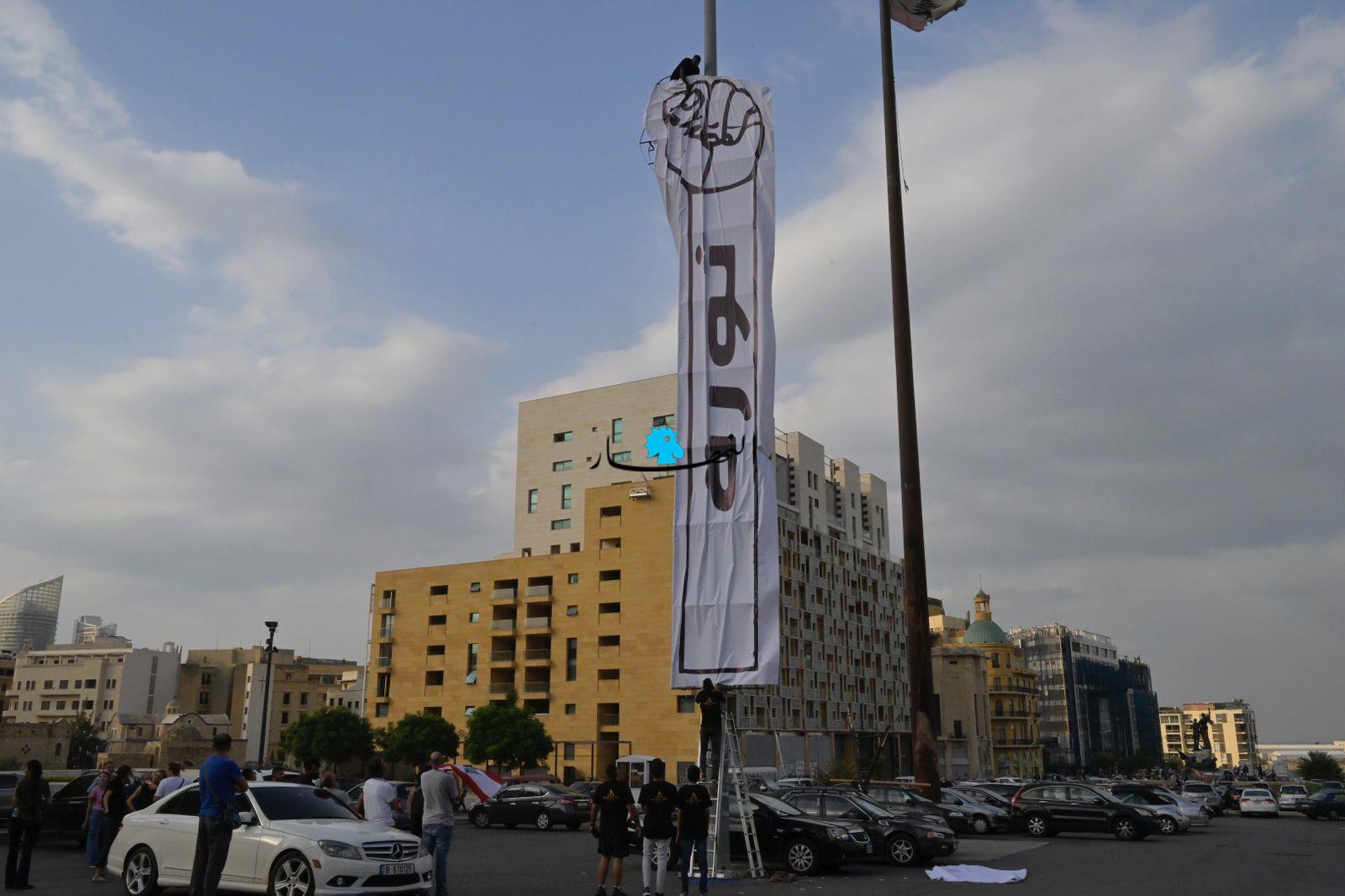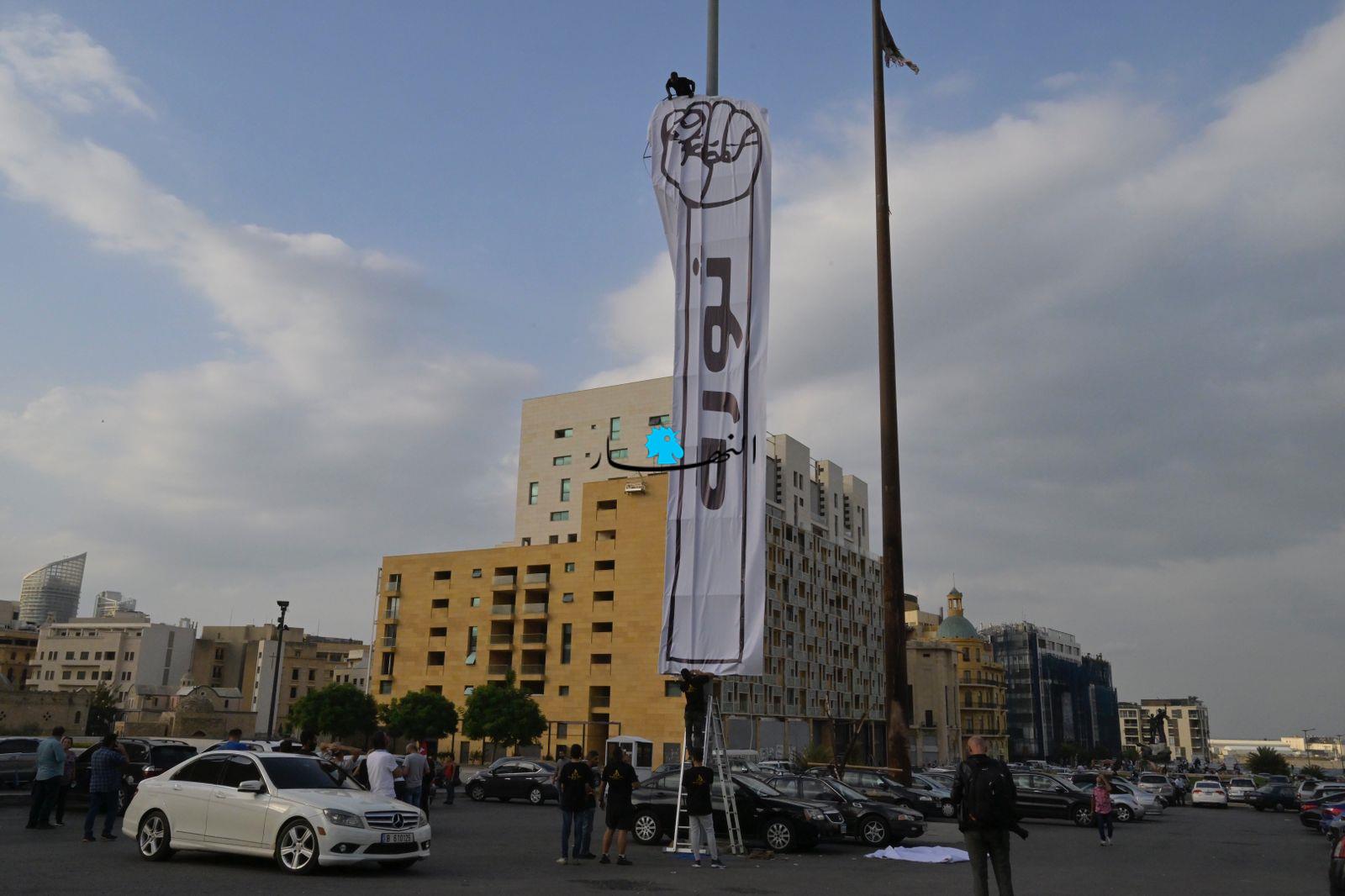 وتجمّع عدد من الناشطين والمجموعات، بعد ظهر اليوم، في ساحة الشهداء حيث تم رفع قبضة الثورة مجدّداً.