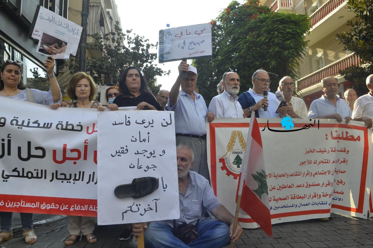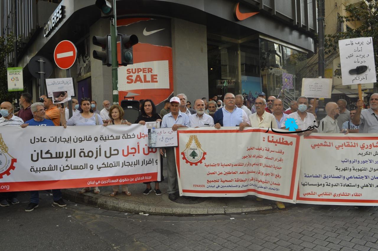 نفّذت لجنة "الدفاع عن حقوق المستأجرين في لبنان" اعتصاماً، في إطار المشاركة في الإعتصامات التي ينظّمها اللقاء التشاوري النقابي الشعبي في بيروت، وذلك في شارع الحمراء.