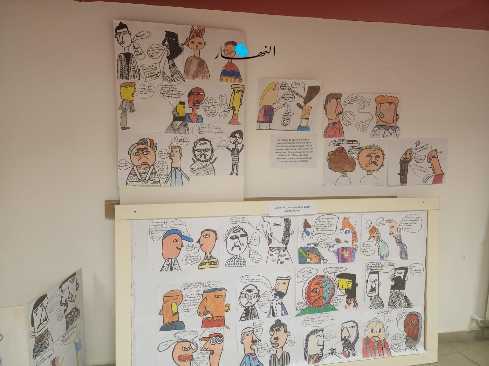 واستخدم الطلّاب الشرائط الهزلية كوسيلة تعليمية لنقل بعض الرسائل الواضحة من الشخصيات الفكاهية مستوحاة من الرسام مازن كرباج للتعبير عن مشاعرهم.