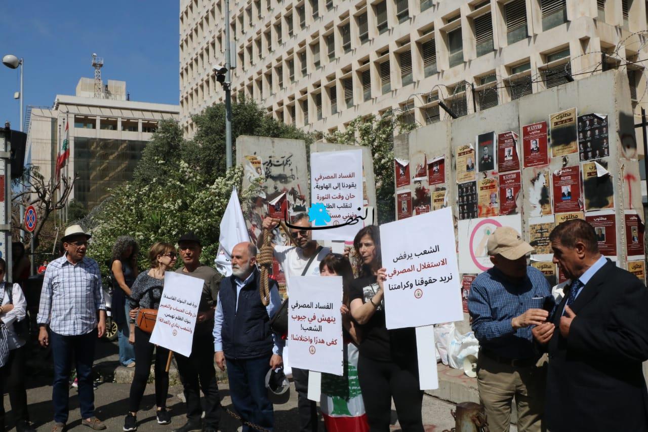 بالصور- اعتصام لمودعين أمام مصرف لبنان: "الفساد المصرفي يقودنا إلى الهاوية"