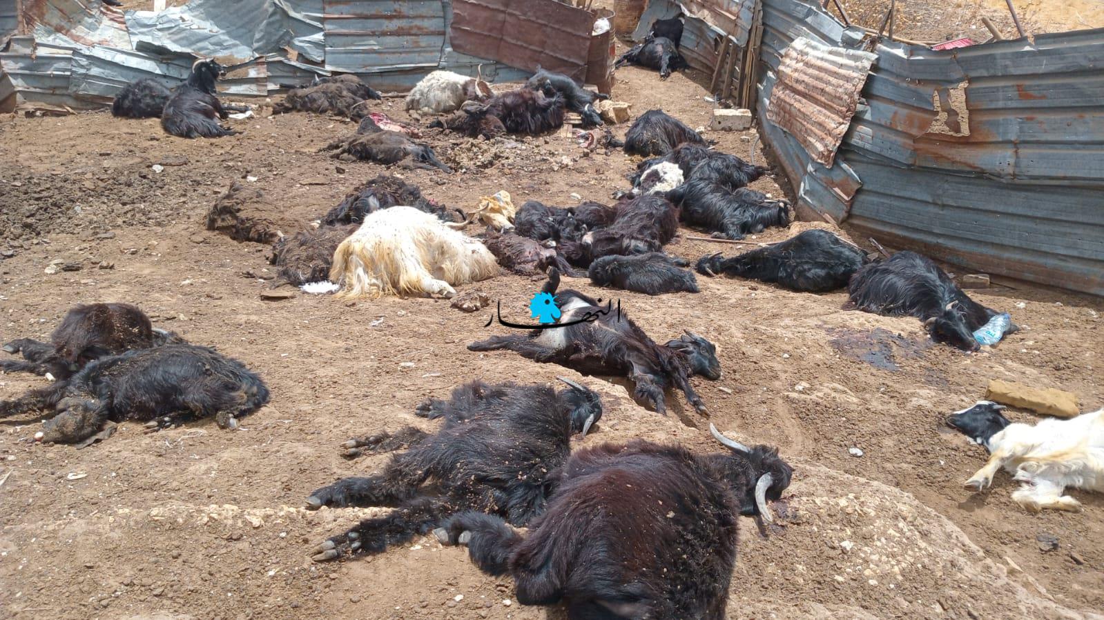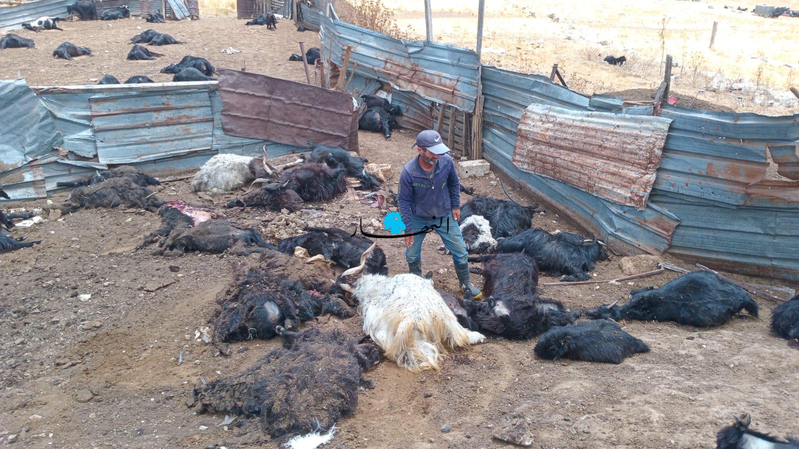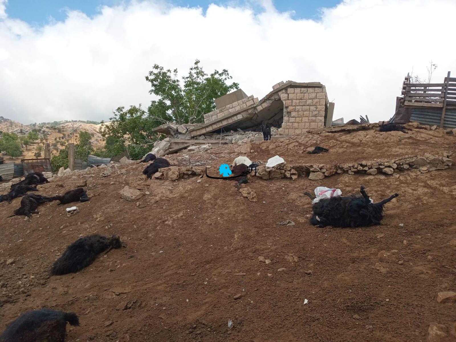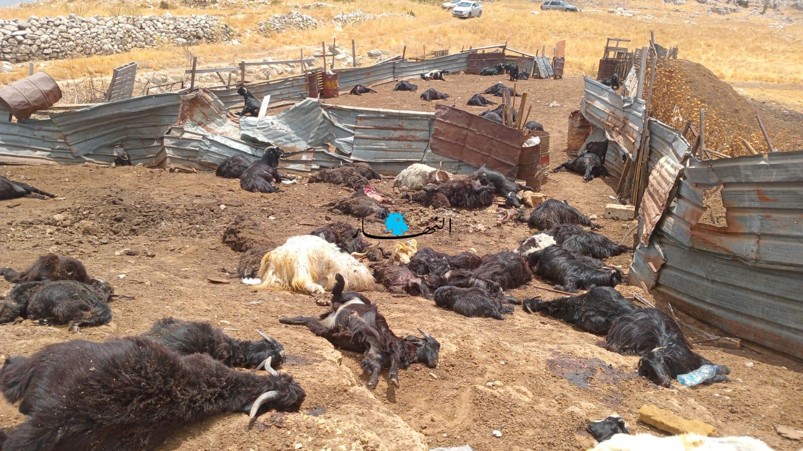 نفوق حوالي 200 رأس ماعز جرّاء القصف الإسرائيليّ على مزرعة العمار في جبل طورا (أحمد منتش).