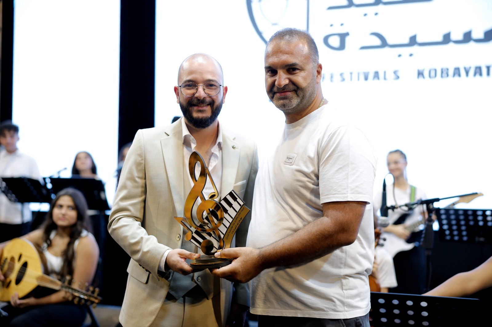وقدّم المدير التنفيذي لمؤسسة "إنسان" نزار عبده درعا ًتقديرية الى قائد الفرقة الياس شمعون وجميع أعضاء الفرقة.