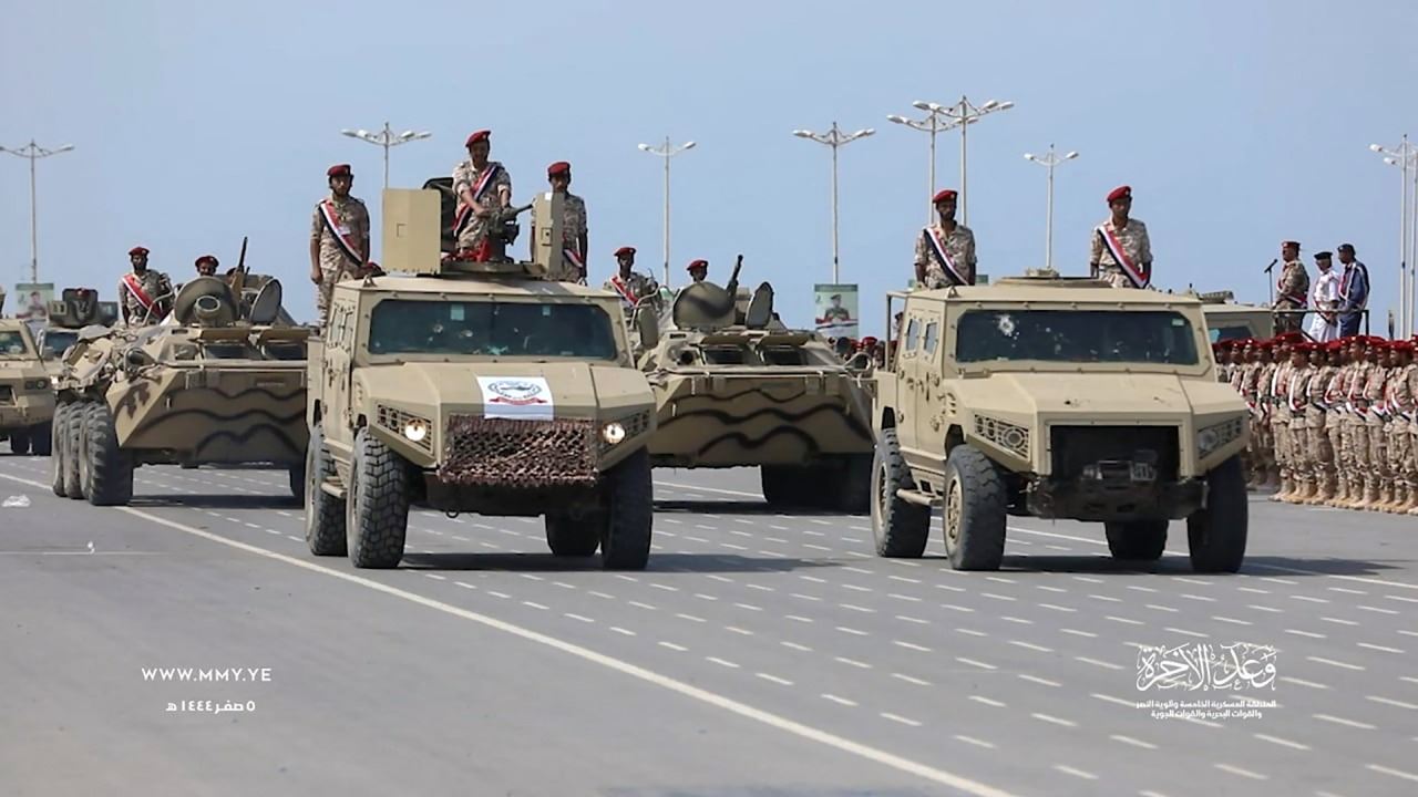 مقاتلون موالون للحوثيين يشاركون في عرض عسكري في محافظة الحديدة الغربية (1 ايلول 2022، أ ف ب).