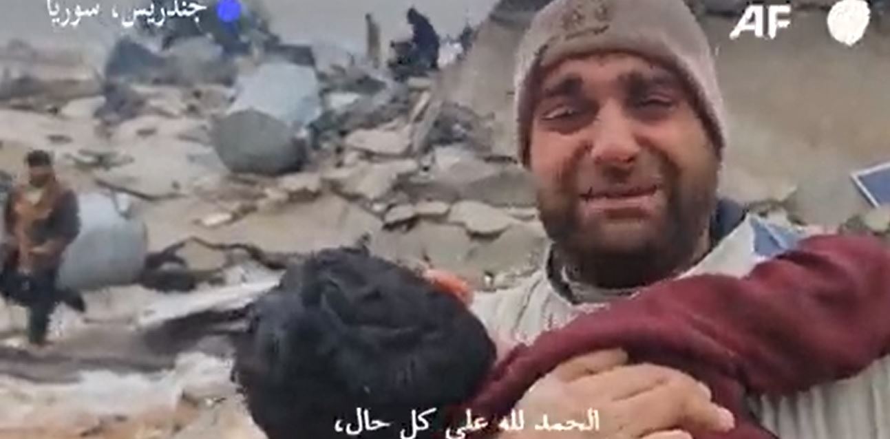 وأظهرت المشاهد سوريين مفجوعين بصغارهم وآباء يسمعون استغاثات أفراد عائلاتهم من تحت الركام الناجم عن الزلزال المدمّر.