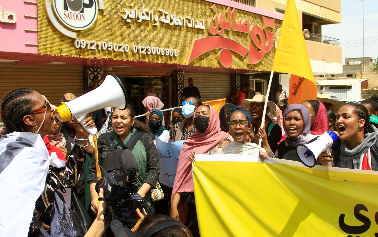 سودانيات خلال تظاهرة في الخرطوم ضد الحكم العسكري (6 تموز 2022، أ ف ب).