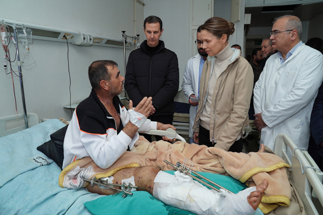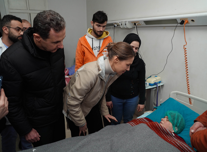 وصل الرئيس السوري بشار الأسد وزوجته أسماء، اليوم، إلى مدينة اللاذقية وزارا المصابين بعد الزلزال في مستشفى "تشرين" الجامعي.