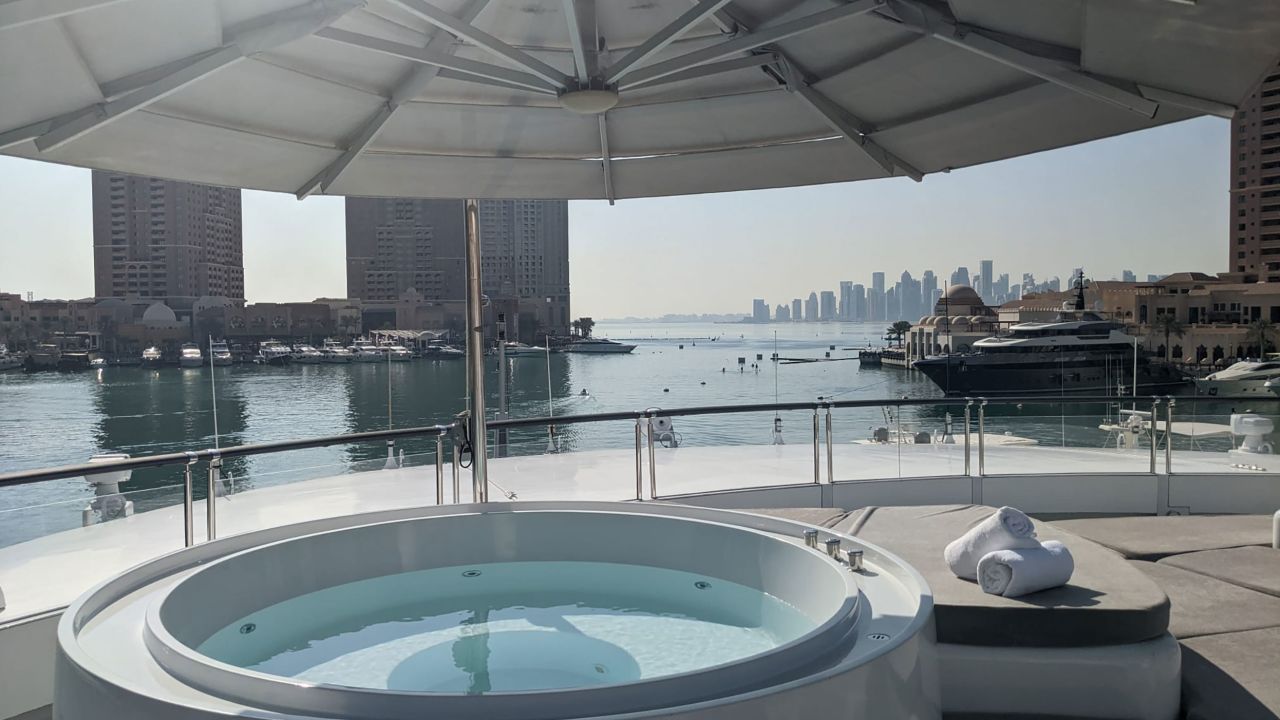 يُعد قارب Saluzi - سالوزي، المعروف بتصميمه المذهل، والغرافيتي الذي يزيّن جانبه، أحد اليخوت الفاخرة. وصل إلى الدوحة في 24 تشرين الثاني، برفقة 35 موظّفاً، وفق ما نشرت شبكة "سي ان ان".