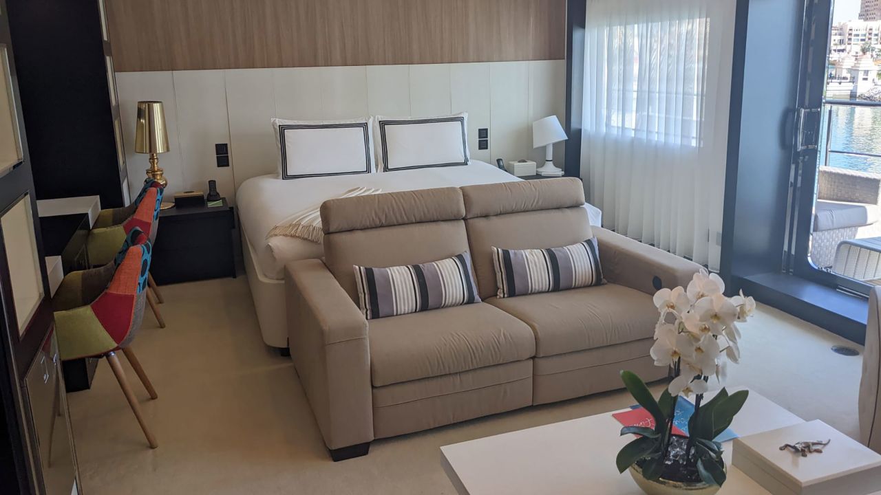 وقال كابتن سالوزي أسباروه شوربادجييف لشبكة "سي ان ان": "يمكننا استيعاب 32 ضيفاً لكنّنا نادراً ما نتلقّى حجوزات كاملة"، وأضاف: "عندما يحبّ الناس الخصوصيّة، يمكنهم استخدام كابينة واحدة أو اثنتين فقط، ولكن يمكنهم أيضاً إحضار الكثير من الموظّفين معهم".