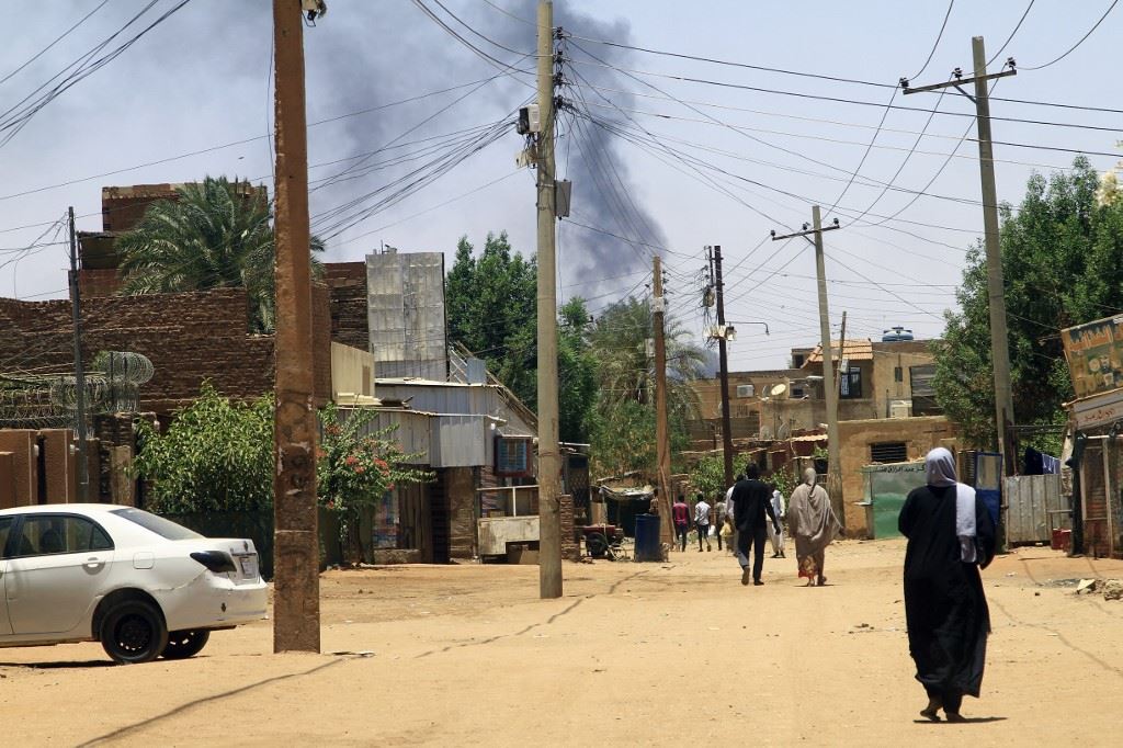دخان يتصاعد خلف مبانٍ في الخرطوم مع احتدام القتال بعد انهيار هدنة استمرت 24 ساعة (19 نيسان 2023، أ ف ب).