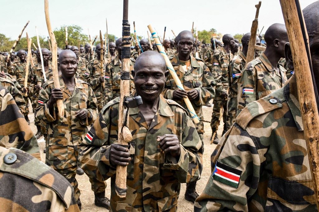 عناصر جدد من قوات الدفاع الشعبية لجنوب السودان في القوات الموحدة خلال احتفال تخرج في ملكال (21 ت2 2022، أ ف ب).