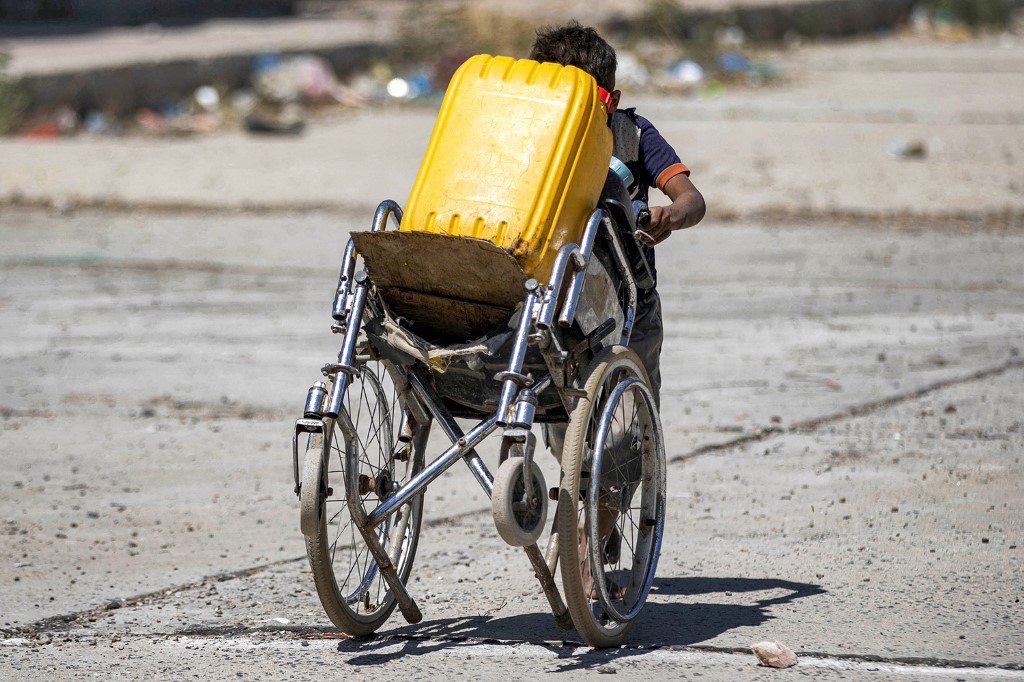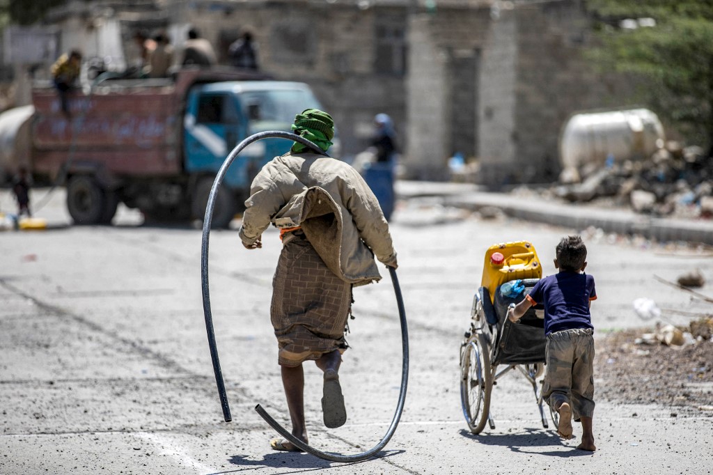 أطفال في اليمن يهتمون بتأمين المياه بدلًا من الذهاب إلى المدرسة (أ ف ب).