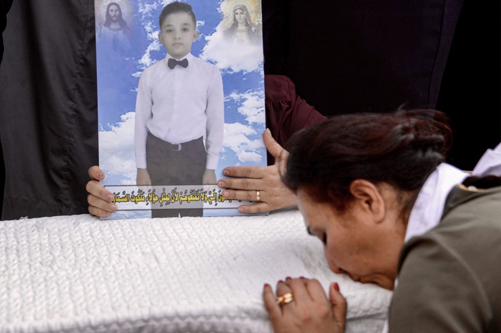 تحت لوحة للسيد المسيح وعلى وقع الصلوات، مرّرت النعوش الواحد تلو الآخر نحو المقبرة أمام أنظار المئات من المشيعين في بلدة قرقوش في شمال العراق الأربعاء، جاؤوا ليودّعوا بعض ضحايا الحريق المفجع الذي وقع خلال حفلة زفاف الليلة الماضية.