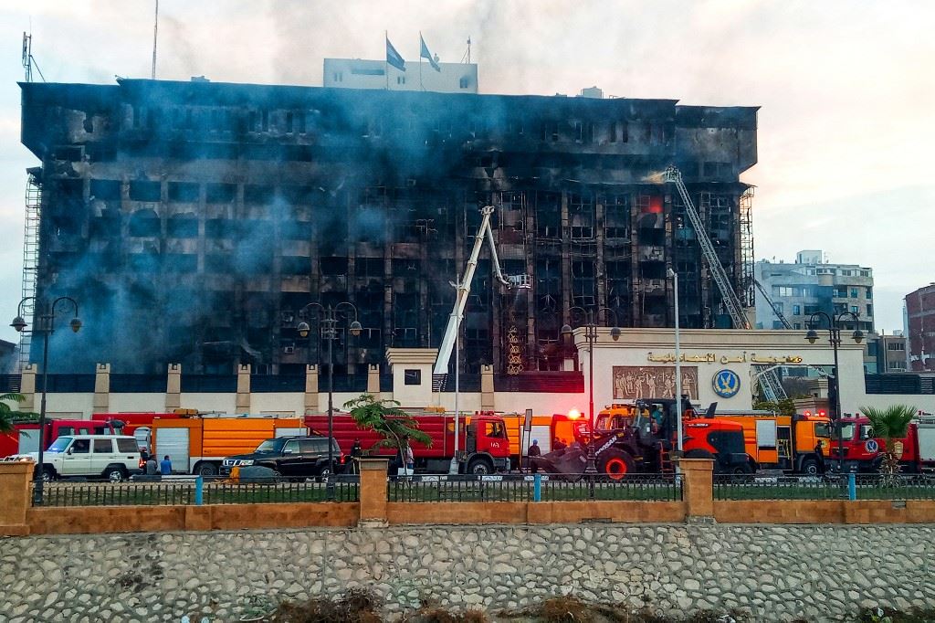 السيطرة على حريق هائل في مبنى مديرية الأمن في الإسماعيلية (أ ف ب).