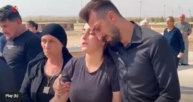 لقطة من فيديو نشره موقع كوردستان24، ويظهر عروس الجمدانية خلال دفن والدها.