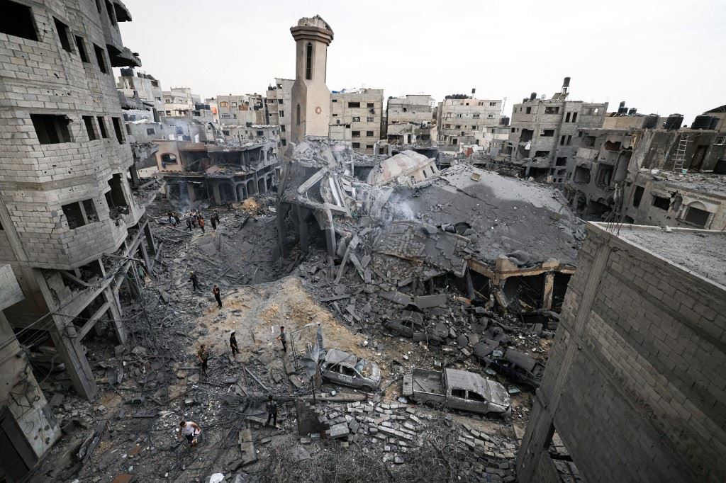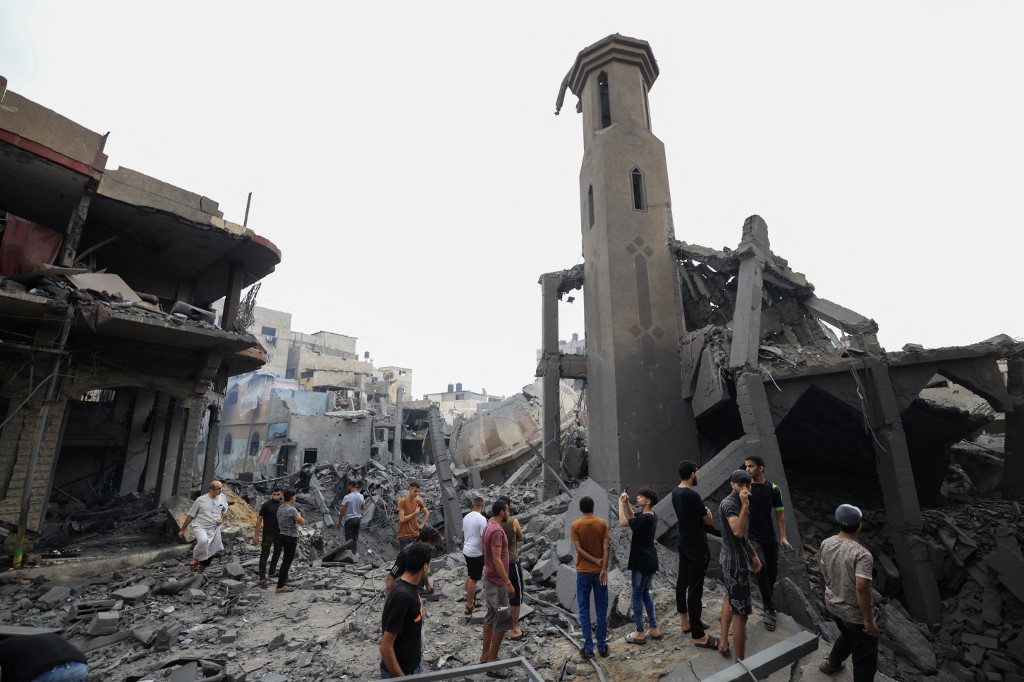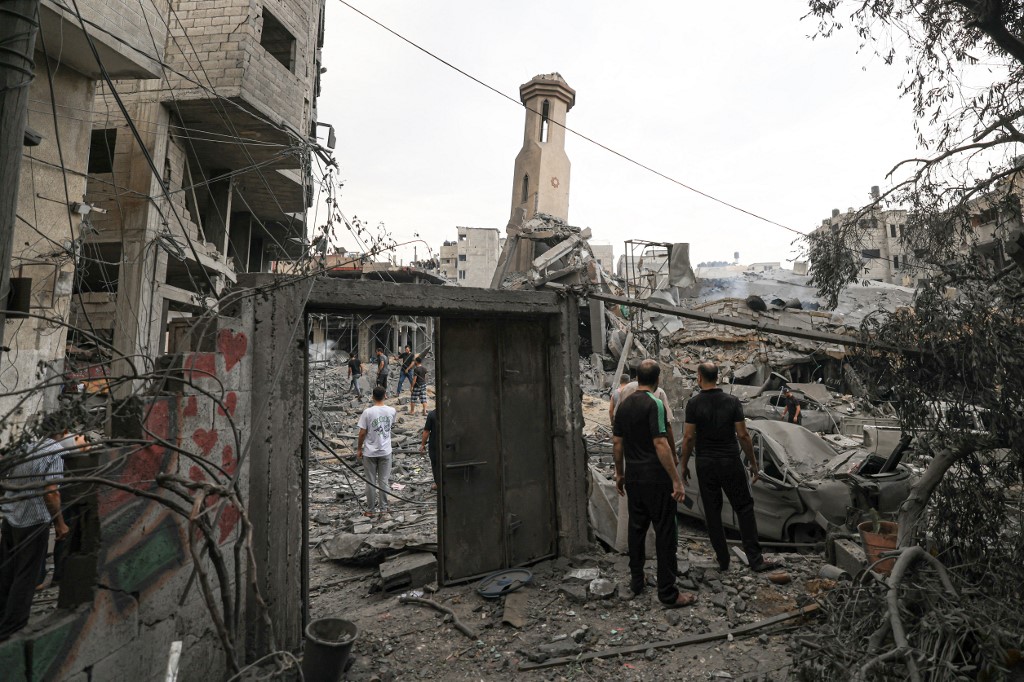 دمار هائل وتدمير مسجد في قطاع غزّة جرّاء الغارات الإسرائيلية العنيفة (أ ف ب).
