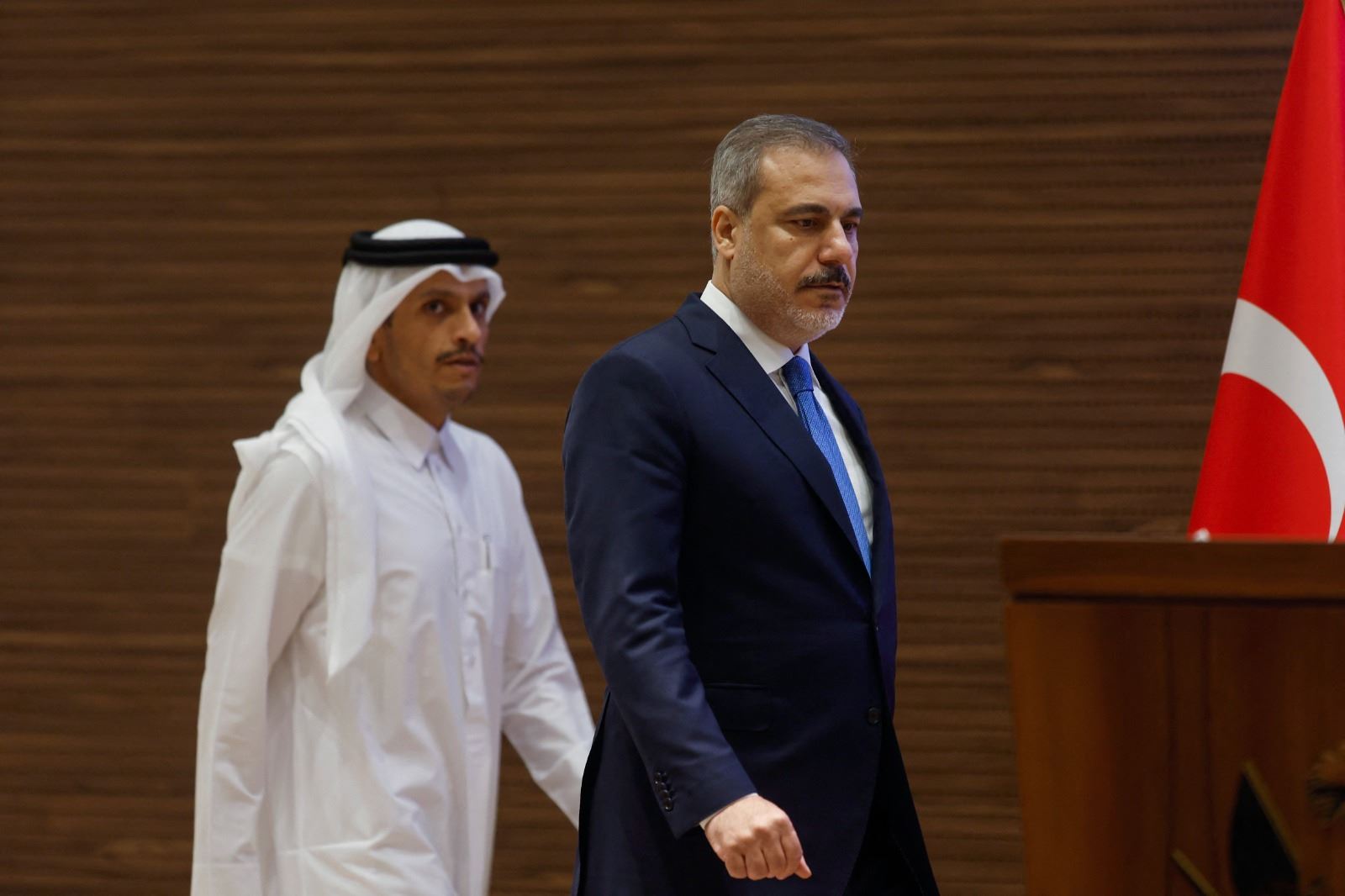 وقال وزير الخارجية القطريّ محمد بن عبد الرحمن آل ثاني في مؤتمر صحافي مع نظيره التركيّ "نؤكد على رفضنا التام للتعامل مع هذه الأزمة بازدواجية معايير في الروح الإنسانية".