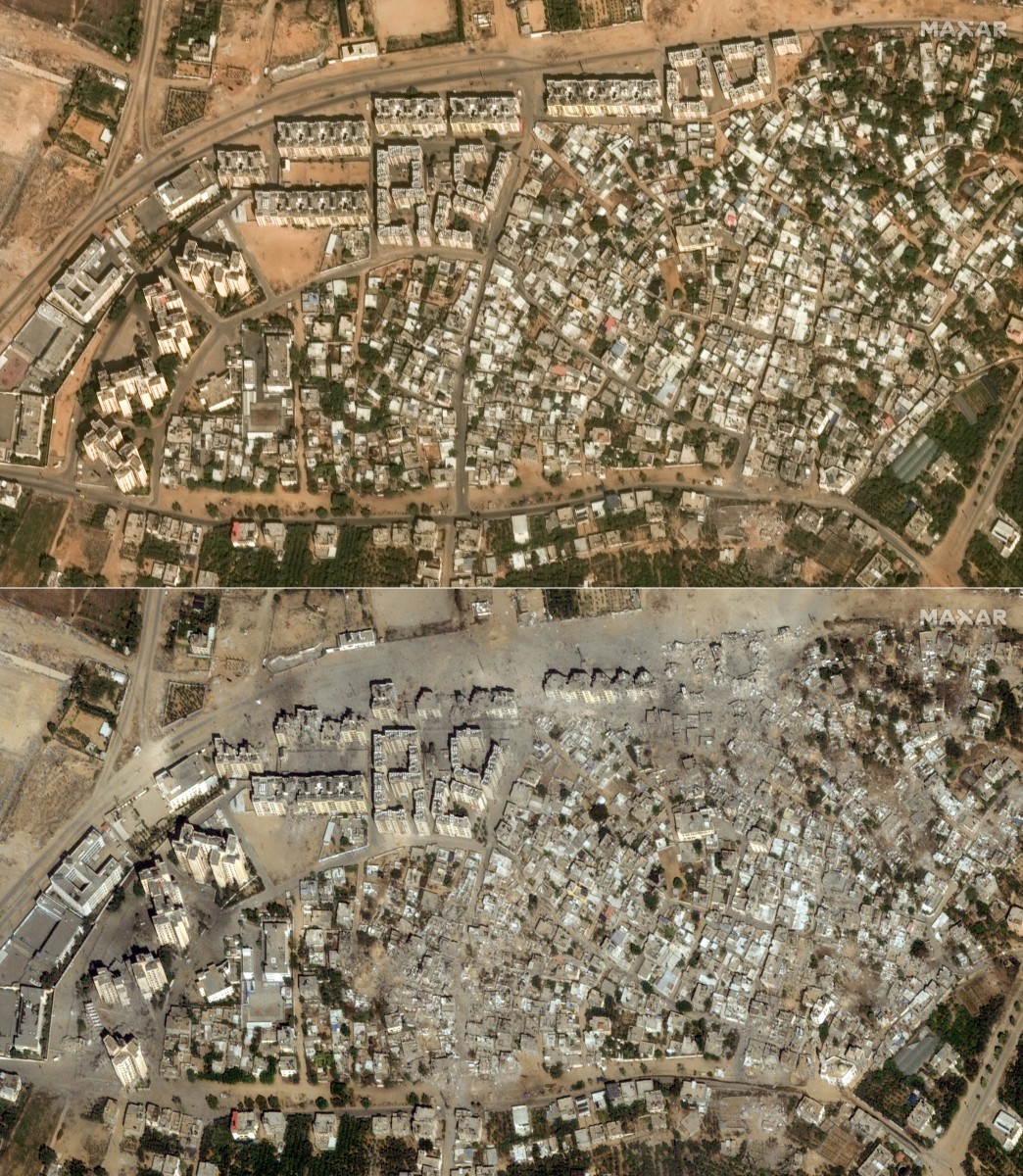 وتظهر الصور التي التقطتها ونشرتها شركة "ماكسار تكنولوجيز"، بعض المدن والأحياء الفلسطينيّة في شمال قطاع غزة، قبل وبعد القصف الإسرائيلي، الذي بدأ عقب هجوم حماس المفاجئ.
