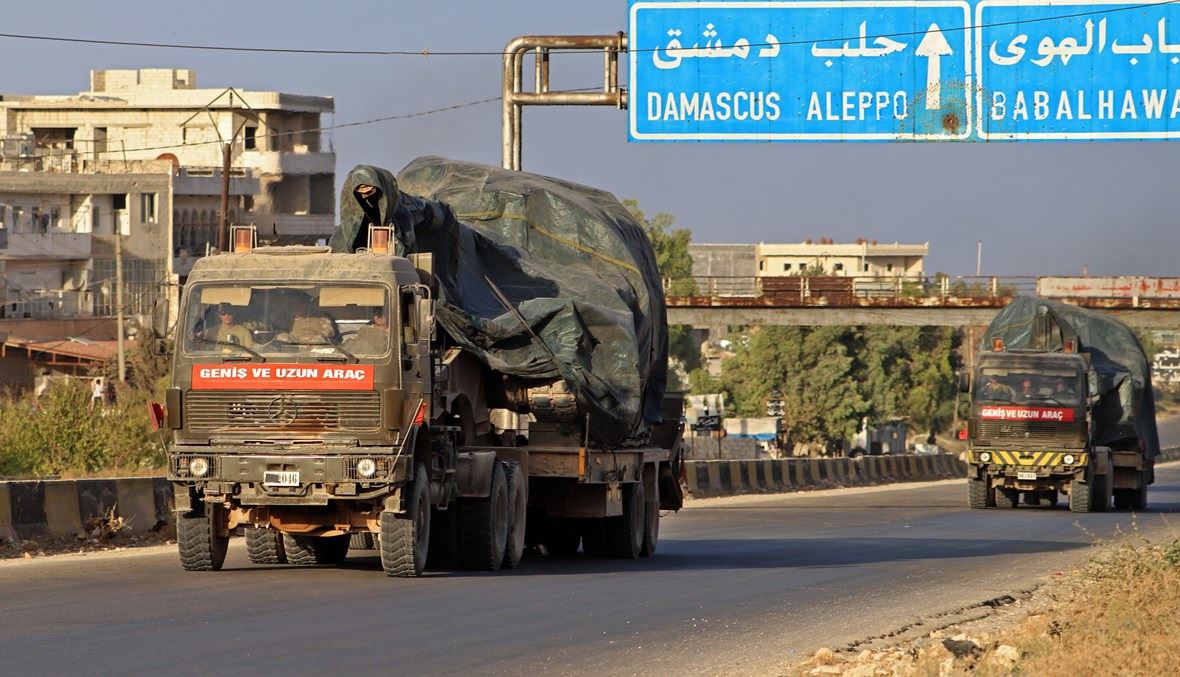 قافلة عسكرية تركية تمر قرب مدينة أريحا في ريف إدلب بعد انسحابها من نقطة مراقبة في ريف حماة عام 2020 (أرشيفية، "أ ف ب").