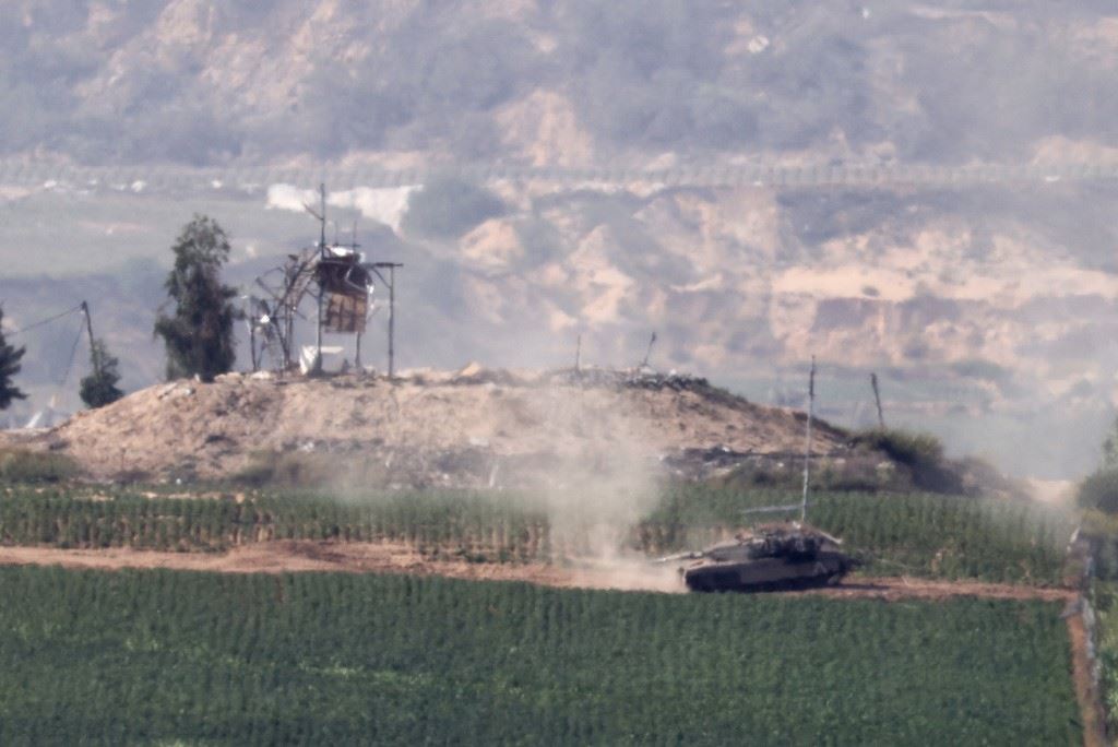 دبابة للجيش الإسرائيلي تتوغّل برّيا في غزّة (أ ف ب).