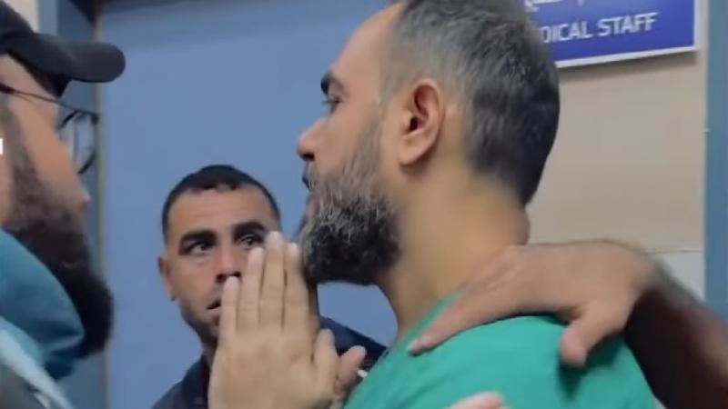 وأدى الطبيب صلاة الجنازة في باحة المستشفى، بينما وضعت جثث افراد عائلته واطفاله أمامه، فيما وقف خلفه عدد من الأقارب والزملاء.