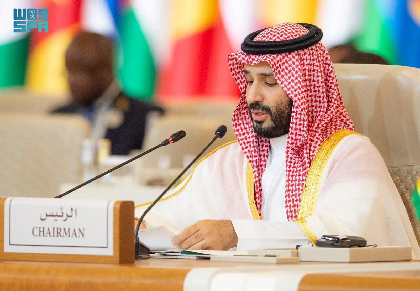 وقال الحاكم الفعلي للسعودية خلال كلمته أمام قمة سعودية أفريقية في الرياض "ندين ما يشهده قطاع غزة من اعتداء عسكري واستهداف المدنيين واستمرار انتهاكات سلطة الاحتلال الاسرائيلية للقانون الدولي الإنساني".