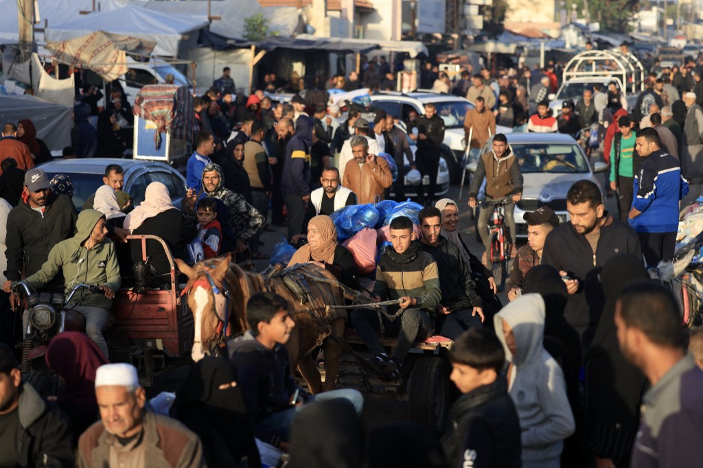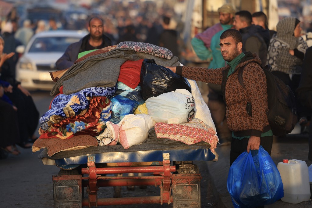 خروج سكان قطاع غزّة إلى الشوارع مع بدء سريان الهدنة وتوجّه البعض إلى شرق خان يونس لتفقّد منازلهم (أ ف ب).