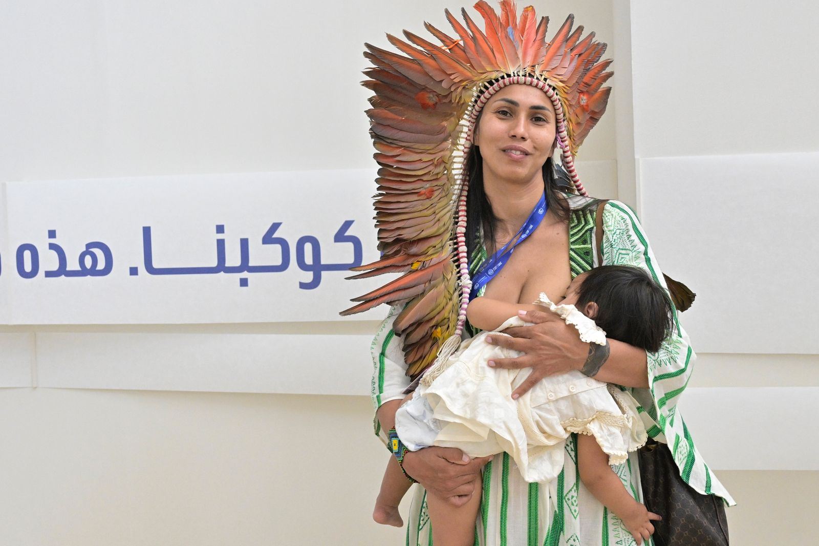 وقد شاركت الناشطة البرازيلية في مجال المناخ ايزابيل بريستيس دا فونيسكا كبار قادة الدول في المسرح، بينما ارتدت ثيابها التقليدية.