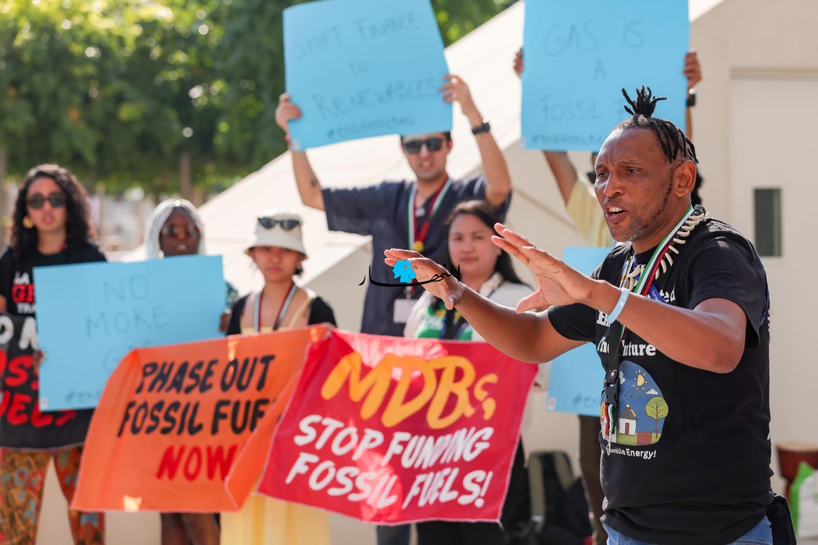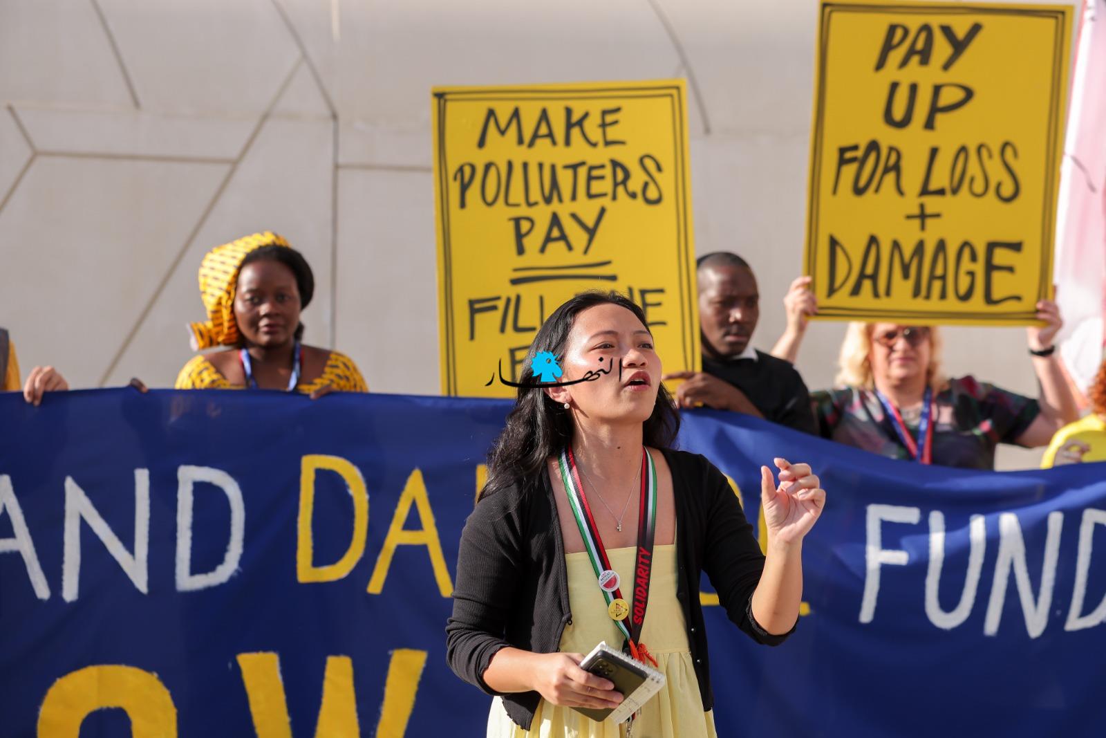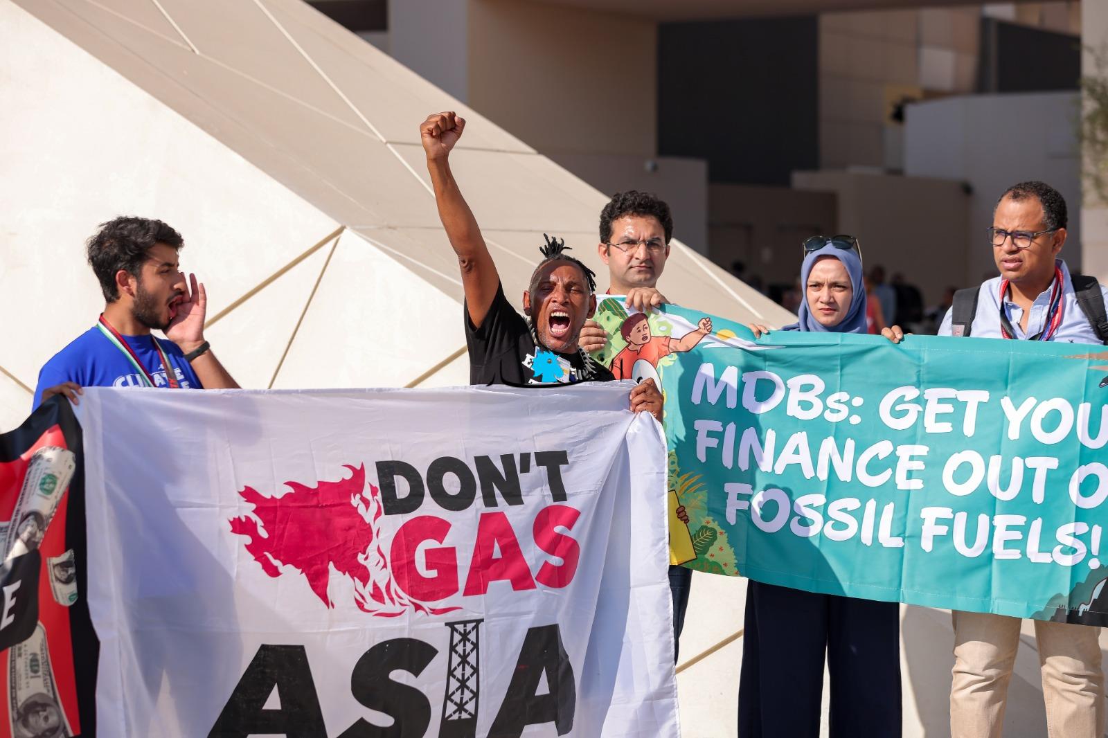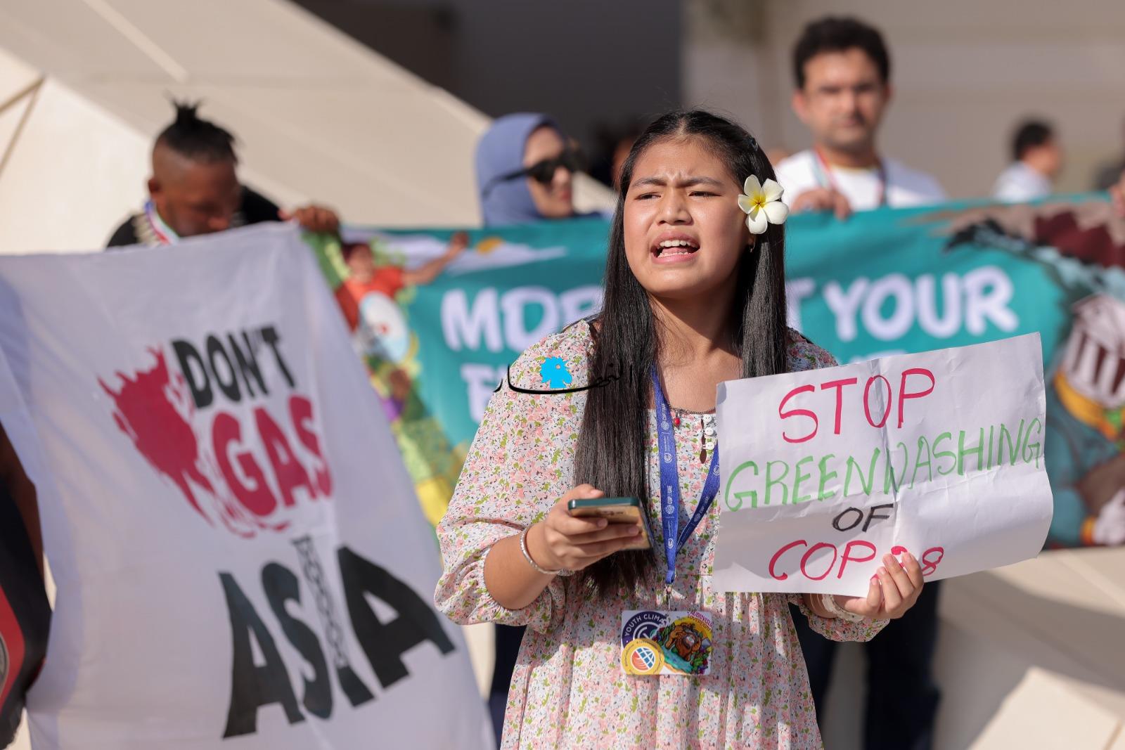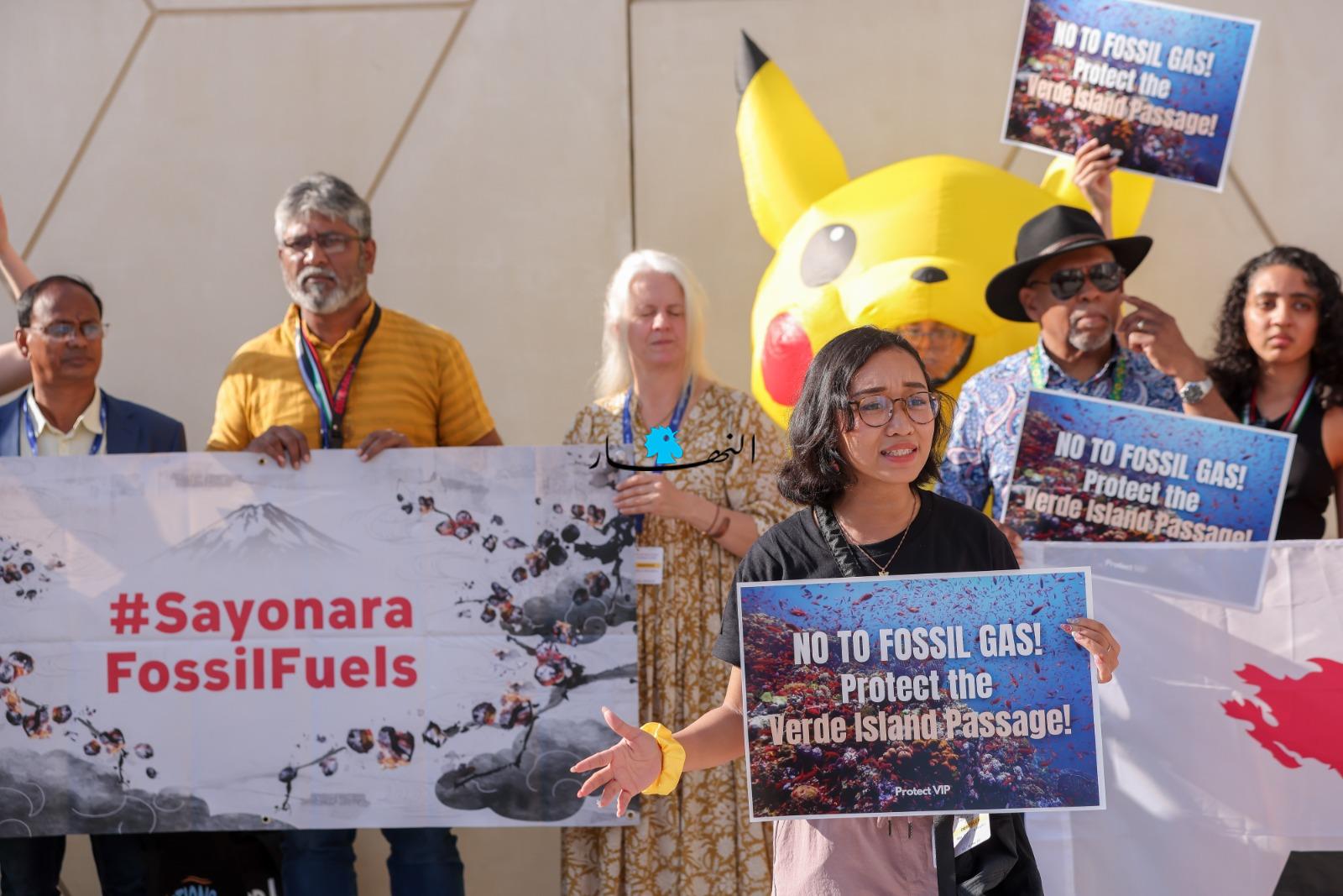 وعلى هامش المؤتمر "كوب28" للمناخ، تجمّع ناشطون بيئيوّن، احتجاجاً على عدم وجود خطّة حقيقة لمكافحة التلوث والاحتباس الحراري.