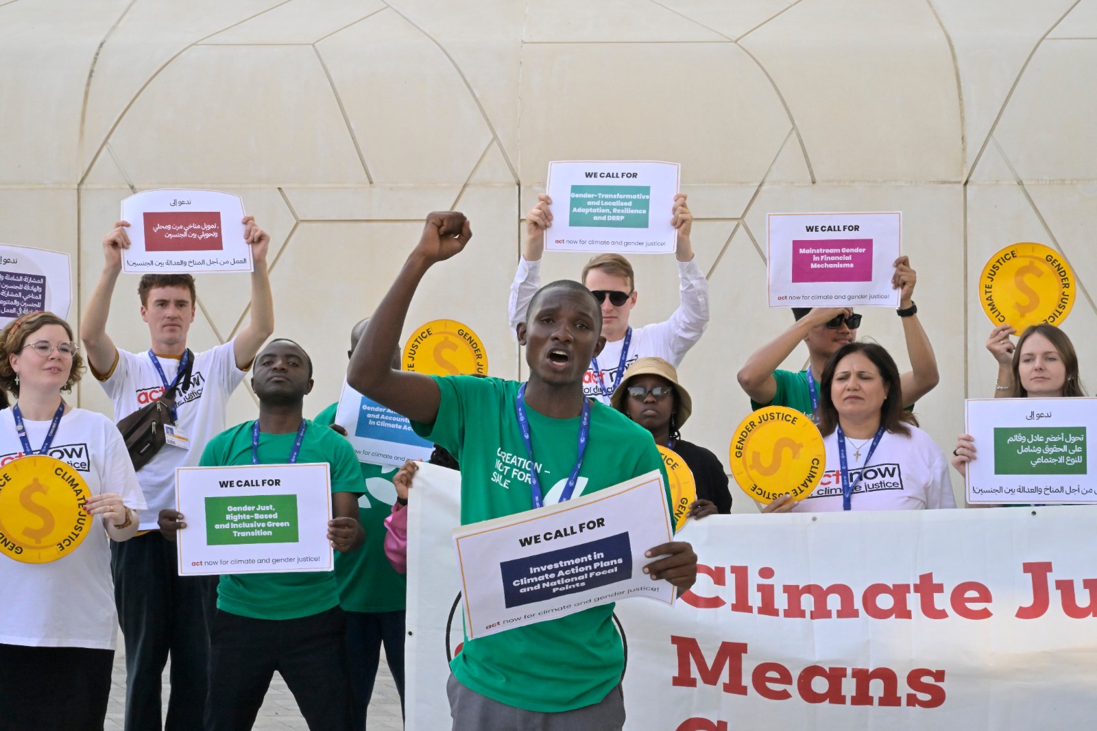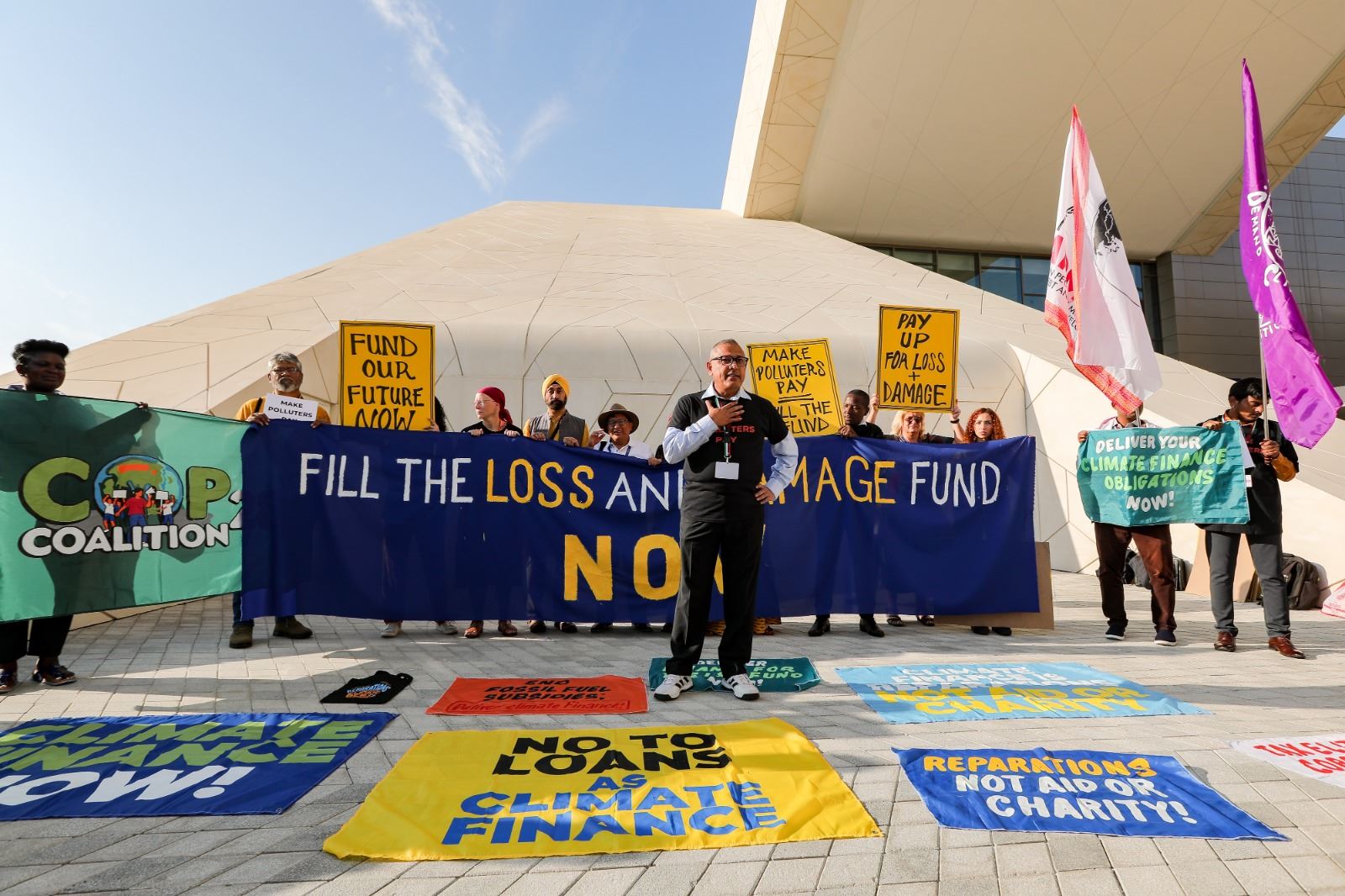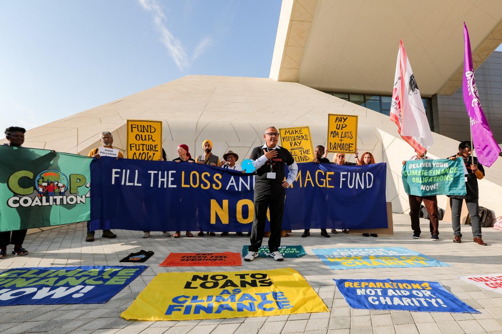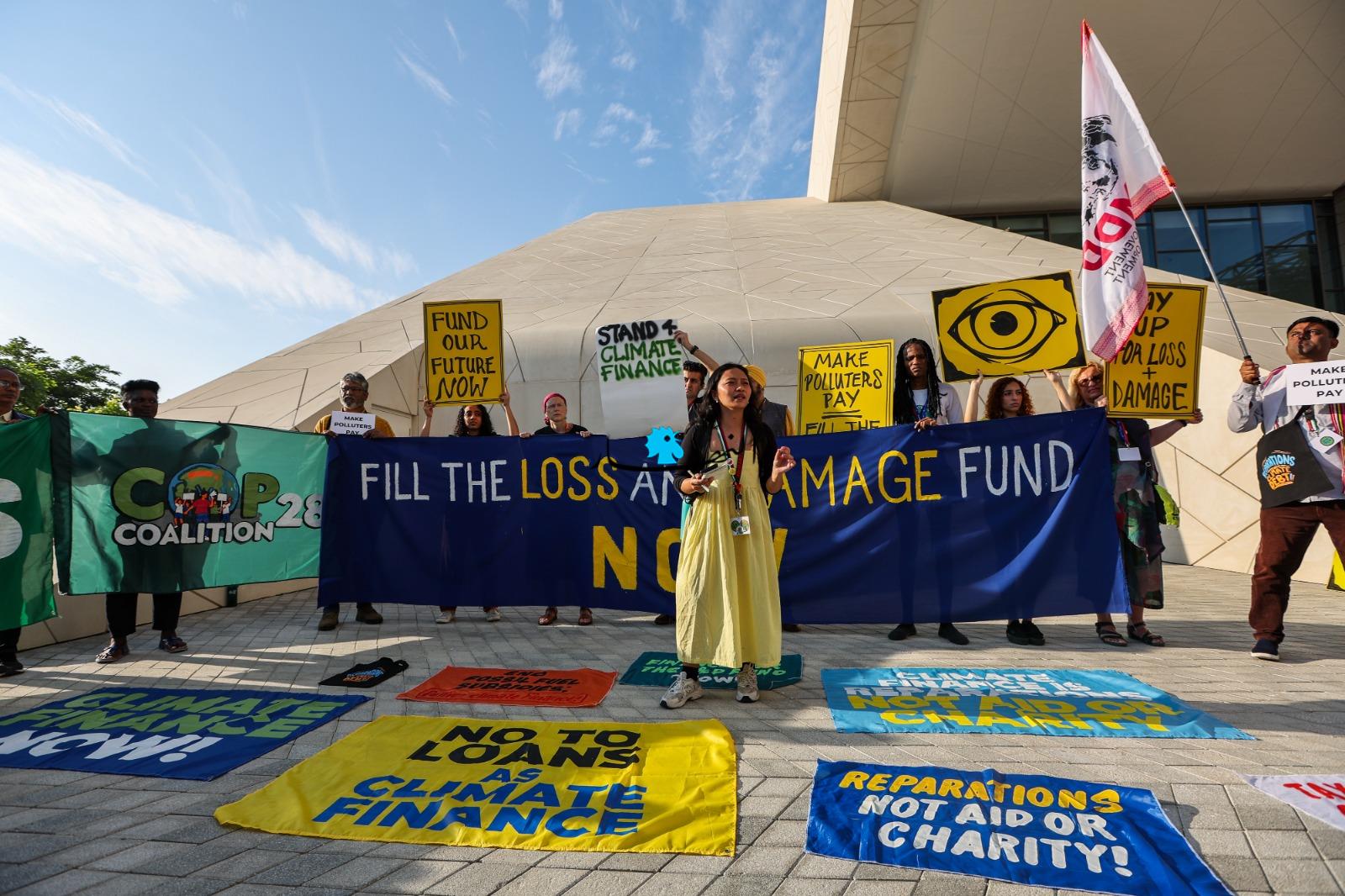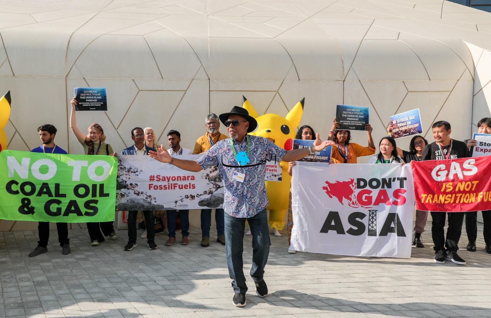 وعلى هامش المؤتمر "كوب28" للمناخ، تجمّع ناشطون بيئيوّن، احتجاجاً على عدم وجود خطّة حقيقة لمكافحة التلوث والاحتباس الحراري.