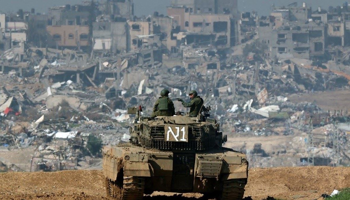 دبابة إسرائيلية أمام الدمار في غزّة.