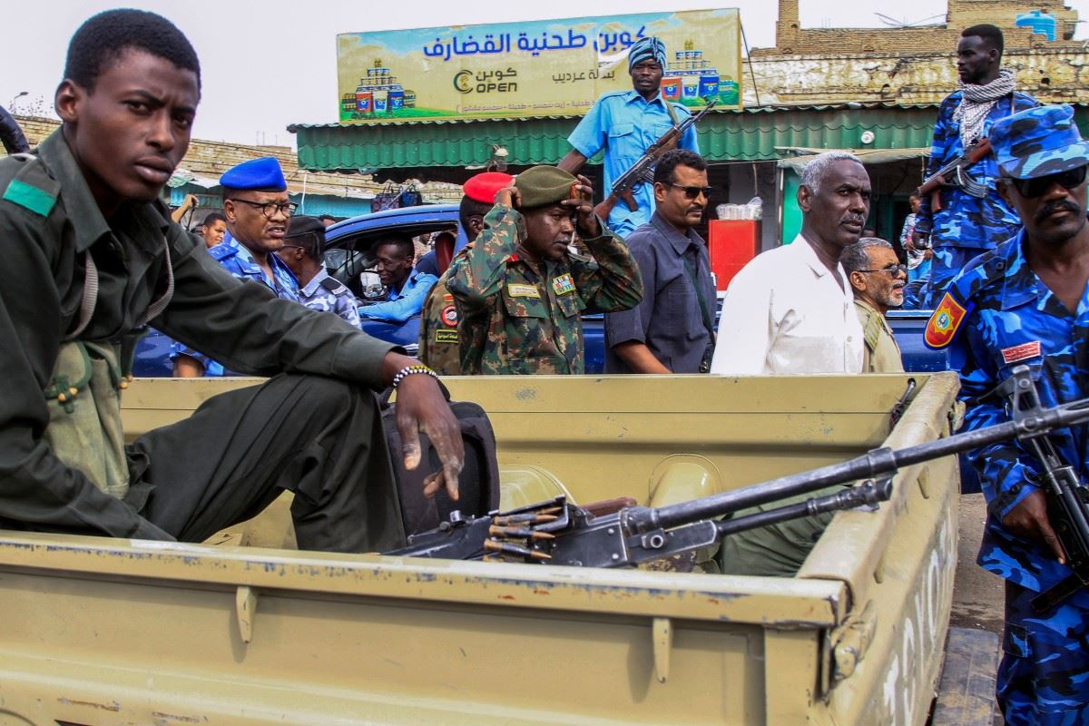 دورية لقوات الأمن السودانية في منطقة تجارية بمدينة القضارف شرق السودان (3 نيسان 2024، أ ف ب).