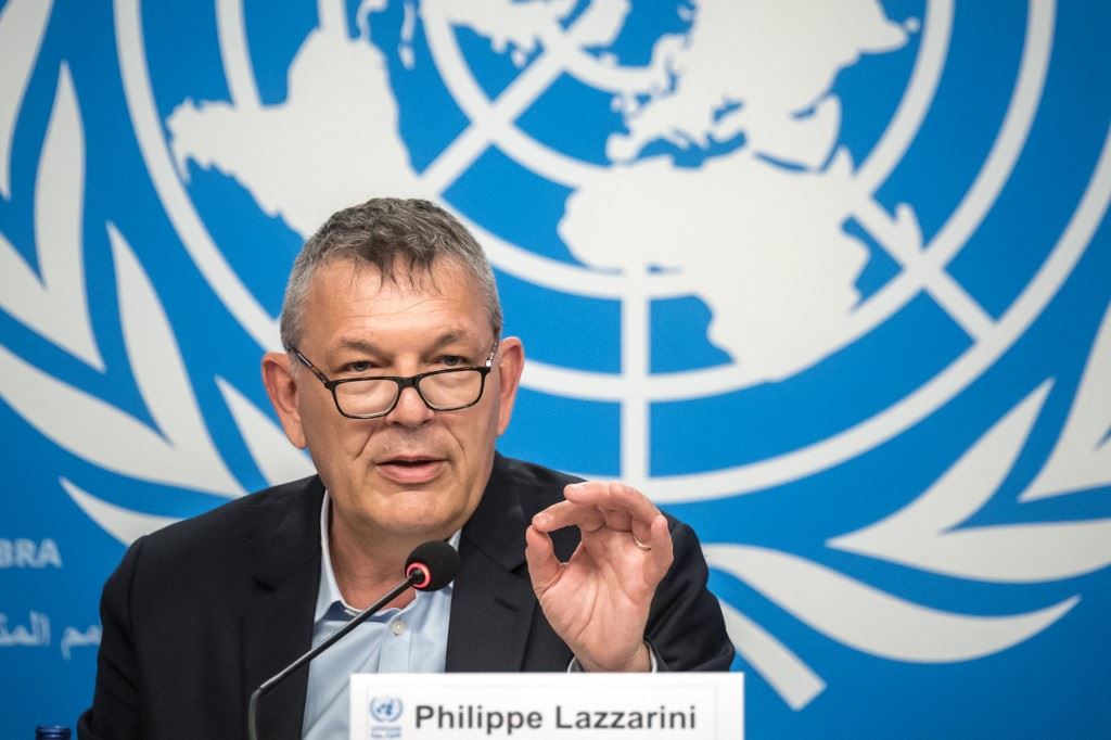 لازاريني خلال مؤتمر صحافي في مكاتب الأمم المتحدة في جنيف (30 نيسان 2024، أ ف ب).