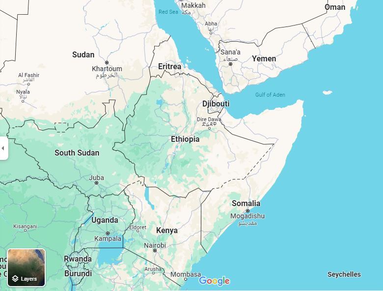 خريطة تظهر منطقة القرن الأفريقي (غوغل مابس).