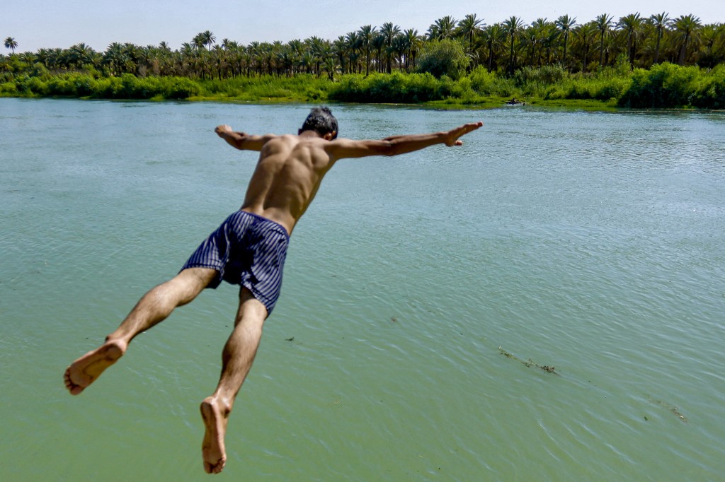 في حيّ الكريعات السكني في شمال بغداد، يسبح عامل البناء موسى عبدالله (21 عاماً) يوميّاً في نهر دجلة إذ "لا خيار آخر" لديه في ظلّ ارتفاع درجات الحرارة في العراق والانقطاع المزمن للتيار الكهربائي.