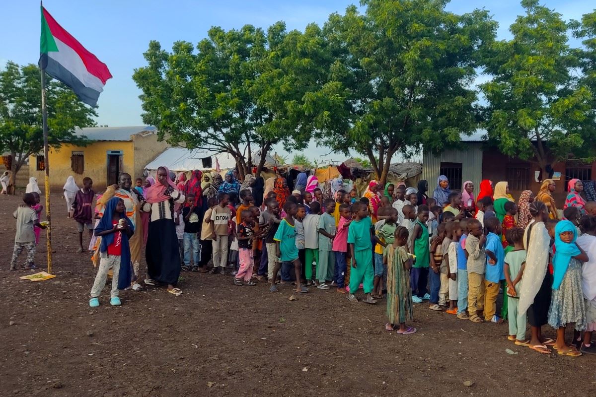 نازحون سودانيون يصطفون للحصول على حصص غذائية في مخيمهم الموقت في مدينة القضارف بشرق السودان (9 ايلول 2024، أ ف ب).