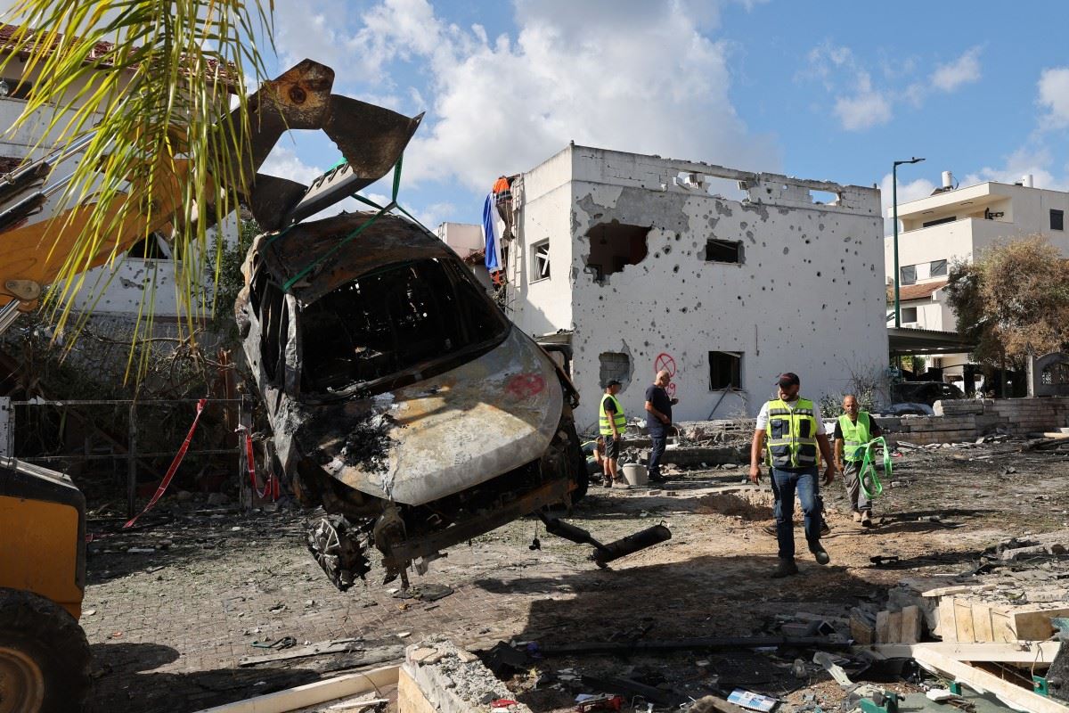 اضرار في موقع هجوم شنه حزب الله على كريات بياليك بمنطقة حيفا بإسرائيل (22 أيلول 2024، أ ف ب).