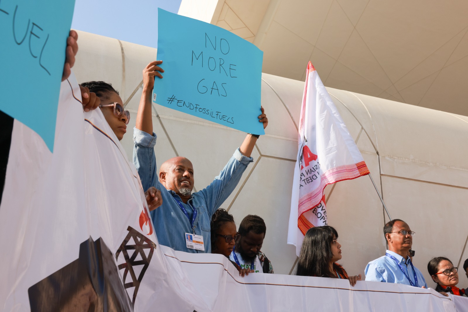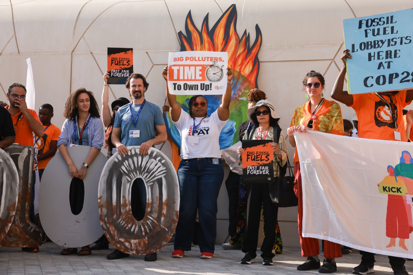 تجمّع لناشطين بيئيّين على هامش "كوب28" في دبي (نبيل إسماعيل).
