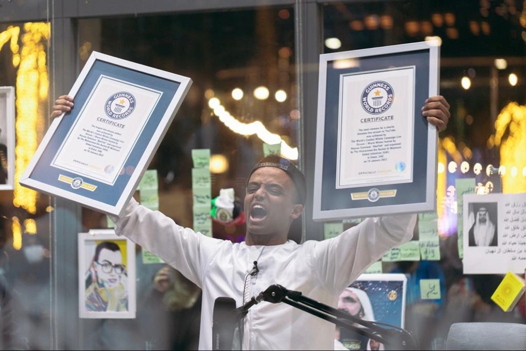 ومن الإمارات، رصد الكتاب جُملة من المبادرات الإنسانية أبرزها إنجاز حملة "أجمل شتاء في العالم" من خلال مبادرة "لنجعل شتاءهم أدفأ" التي حقّقته مبادرات محمد بن راشد آل مكتوم العالمية وشركائها وصانع المحتوى حسن سليمان "أبوفلة". وسُجِّل إنجاز بعد جمع أكبر تبرّع لعلاج مريض حققته هيئة الهلال الأحمر الإماراتي بقيمة فاقت 8 مليون درهم إماراتي (حوالي 2,2 مليون دولار)، وإنجاز جمعية "الإمارات للأورام" لأكثر عدد من أشرطة التوعية التي يتم صناعتها خلال ساعة.
