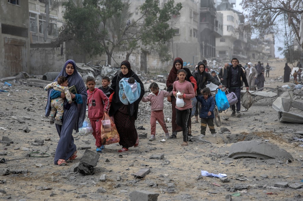 فلسطينيون يفرون بعد قصف إسرائيلي على وسط مدينة غزة (18 آذار 2024، أ ف ب).